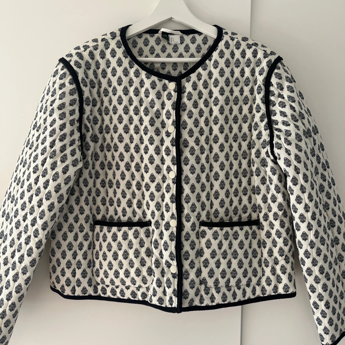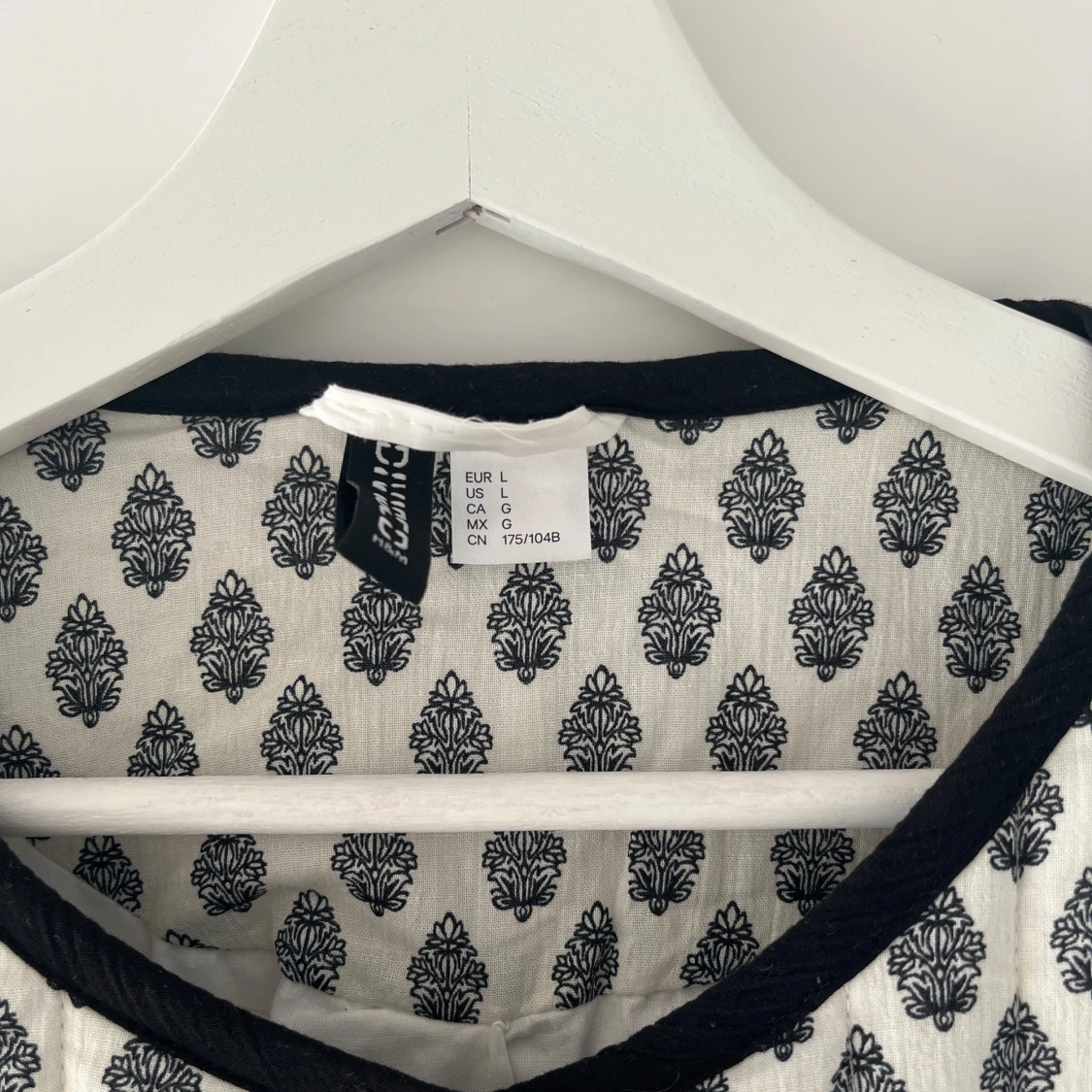 Jackan är i storlek L, jag bär vanligtvis XS/S så skulle vilja säga att den är liten i storleken! Köpt förra året och använt fåtal gånger. Jackan passar perfekt till lite kyligare sommardagar eller som kofta under kalla årstider