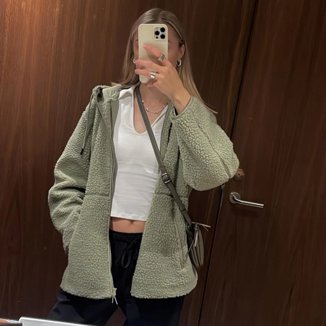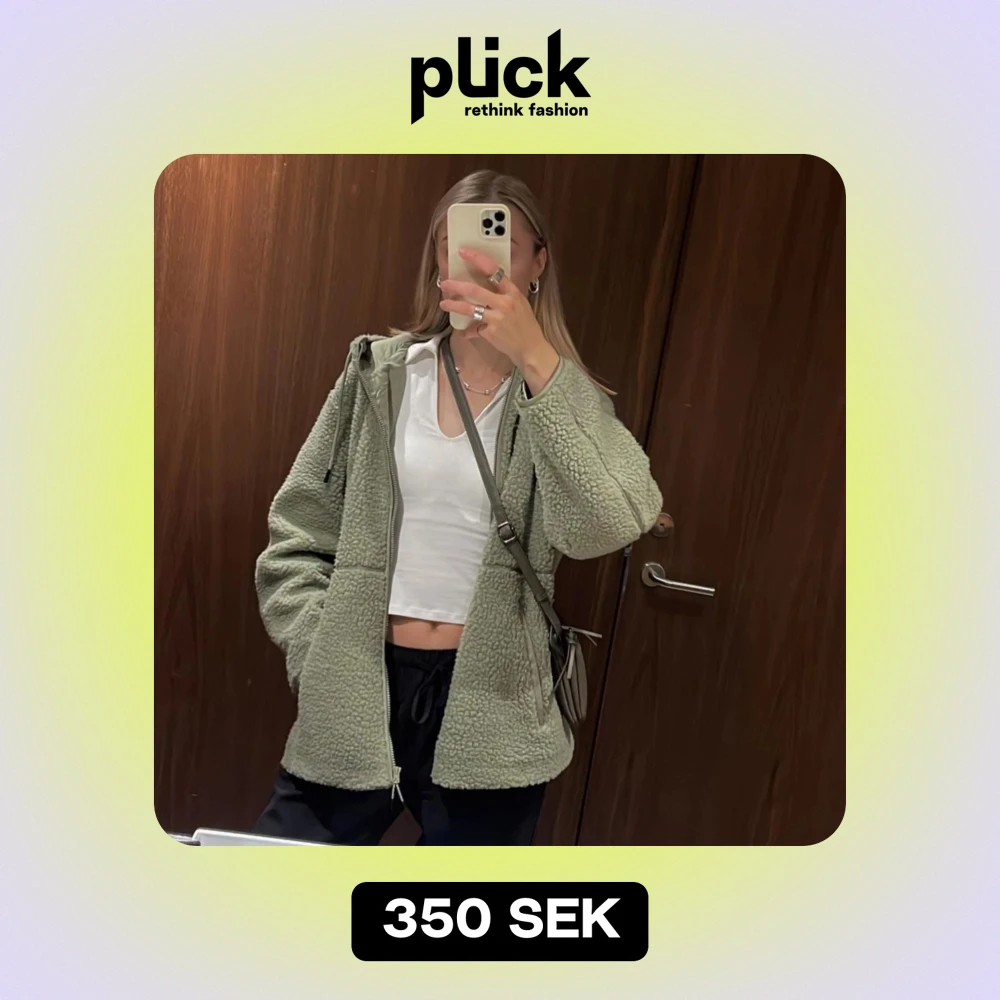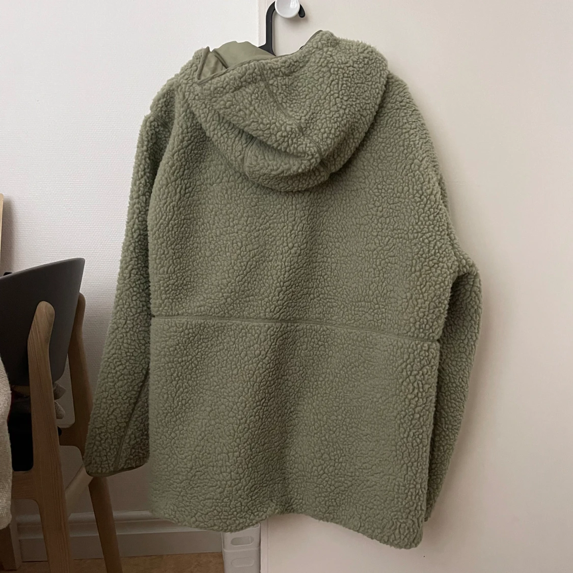 Mysig jacka i pile från H&M. Storlek L (sitter bra på mig som är 175cm) Sparsamt använd så i väldigt fint skick, förutom en fläck på insidan av luvan (ser ut som en vattenfläck), se sista bilden! Blev när jag tvättade jackan.