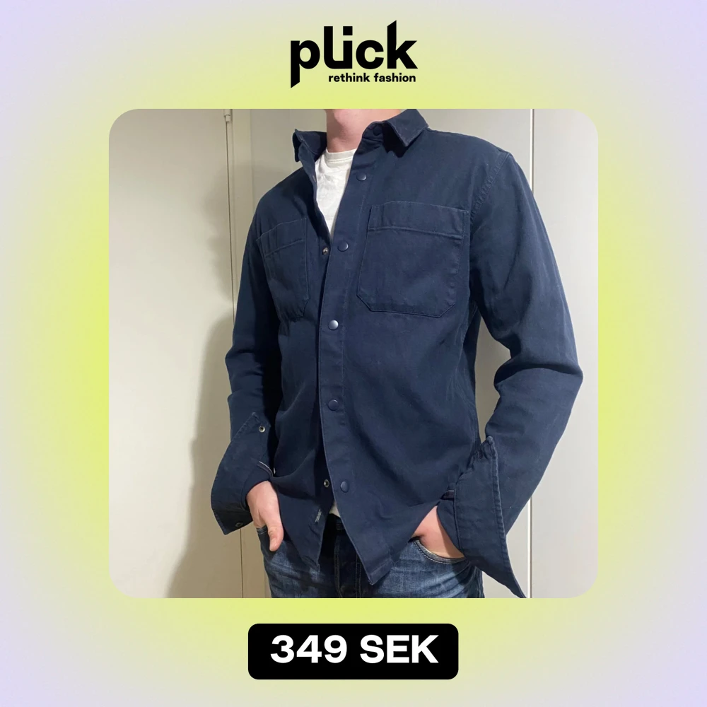 Säljer en snygg mörkblå overshirt. Perfekt för höst och vår, med långa ärmar och knappar framtill. Den har två praktiska bröstfickor och en stilren design som funkar både till vardags och fest. Passar bra över en t-shirt för en avslappnad look.