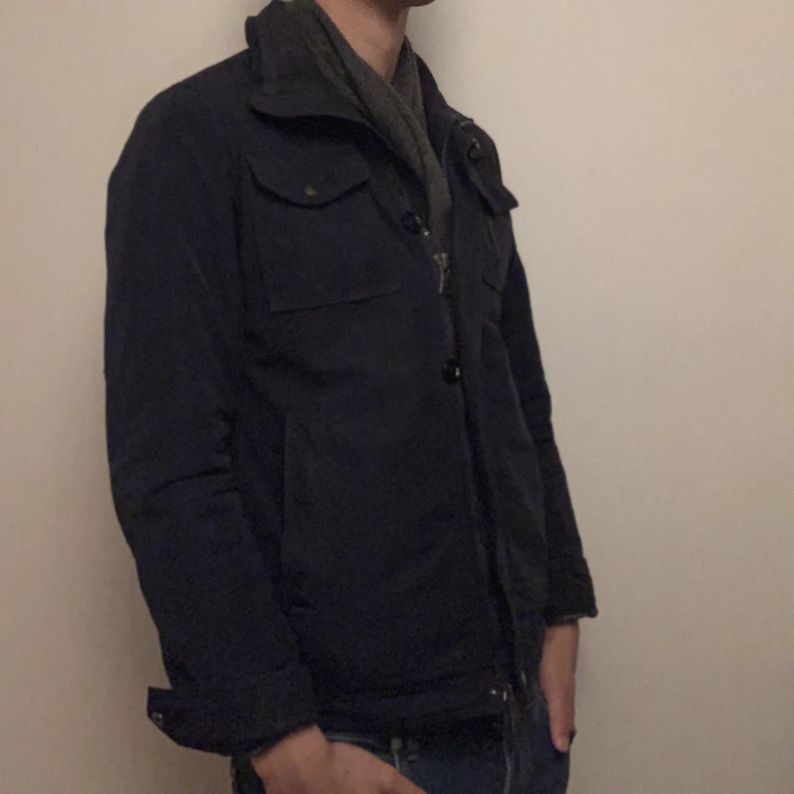 Nypris: 2500 I Mitt pris: 649 Skick: 7.5/10 Jag är 188cm 76kg Jackan är stor för sin storlek. Varan säljs i befintligt skick, då den har vissa defekter, men inget stort. Varan saknar en knapp, och en sak på jackan