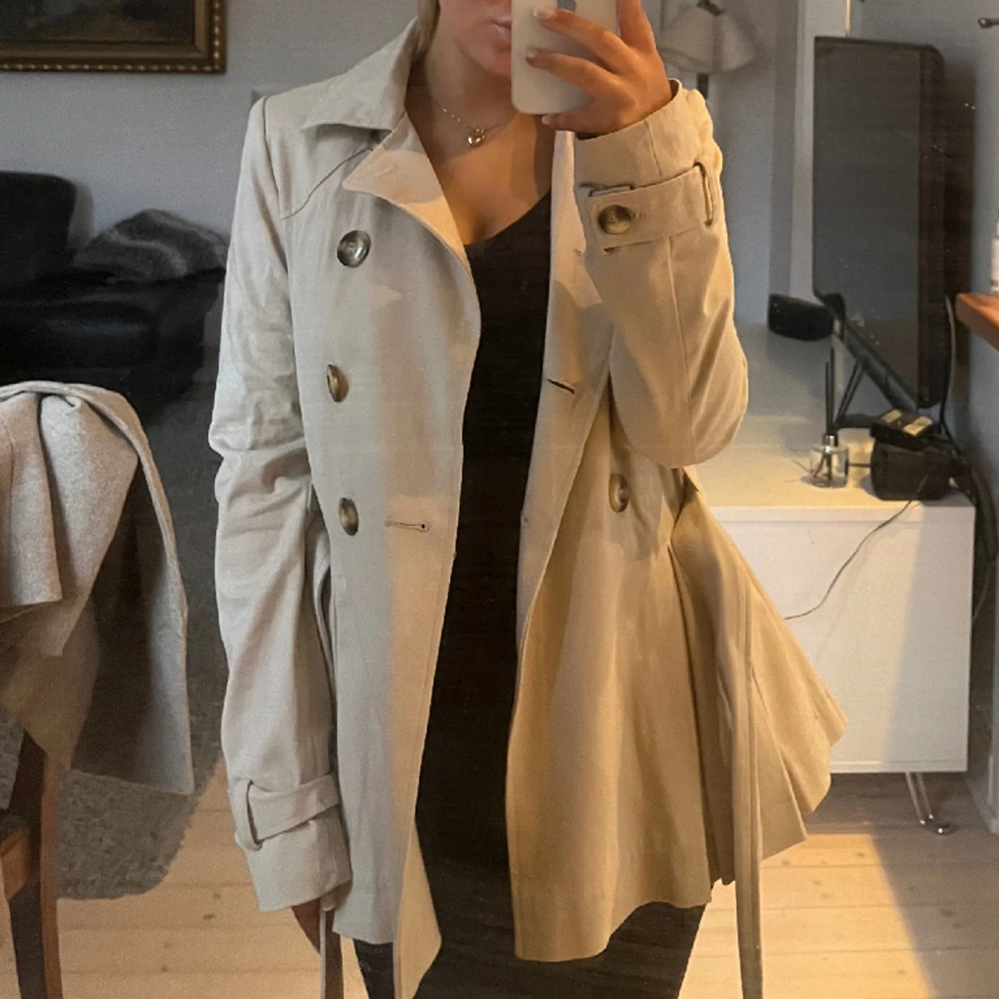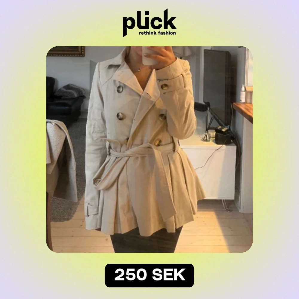 Supersöt trenchcoat liknande jacka, bandet i midjan går självklart att ta av om man vill.