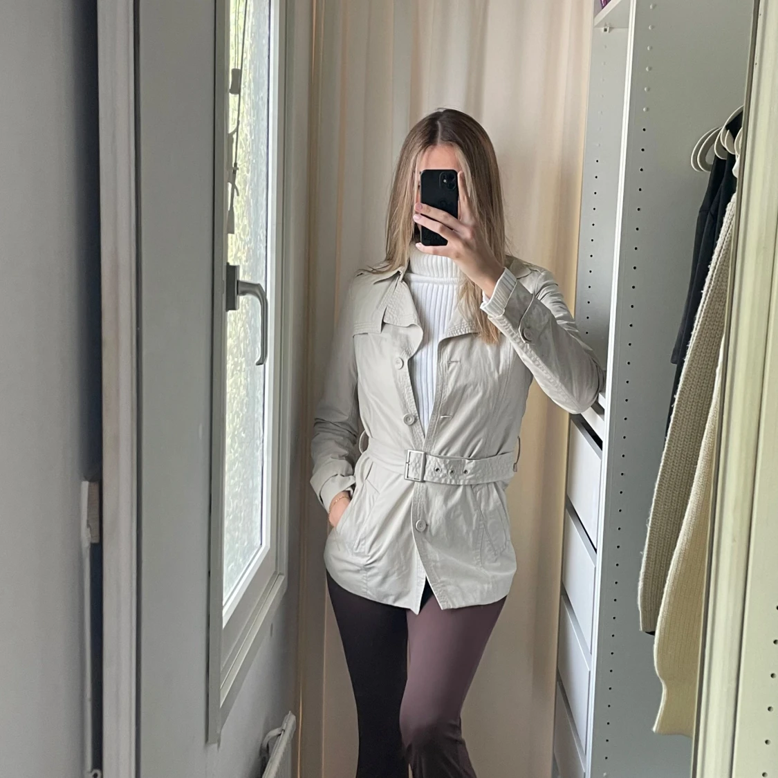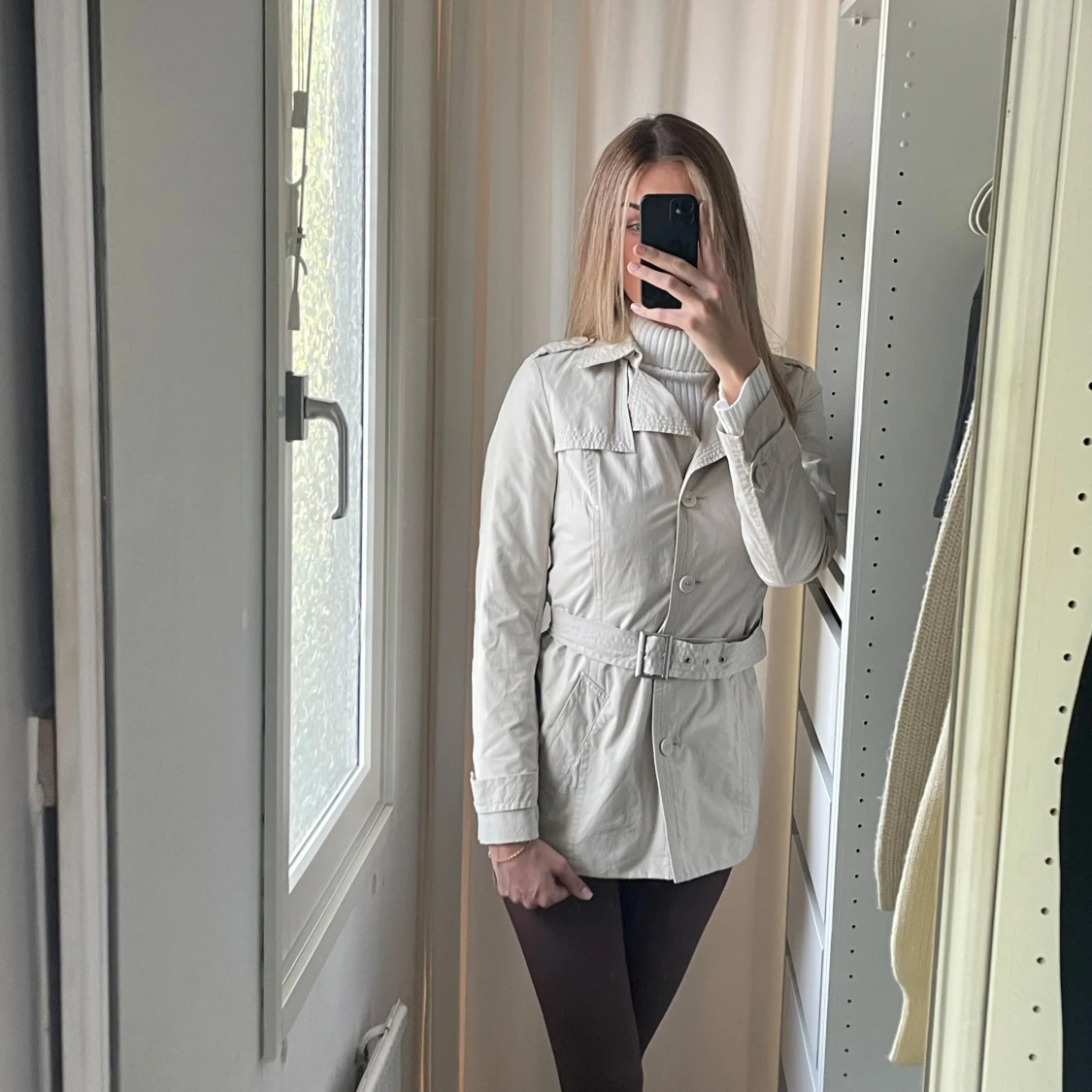 Fin kort kappa med justerbart bälte i midjan köpt på esprit, använd men felfritt skick som ny!