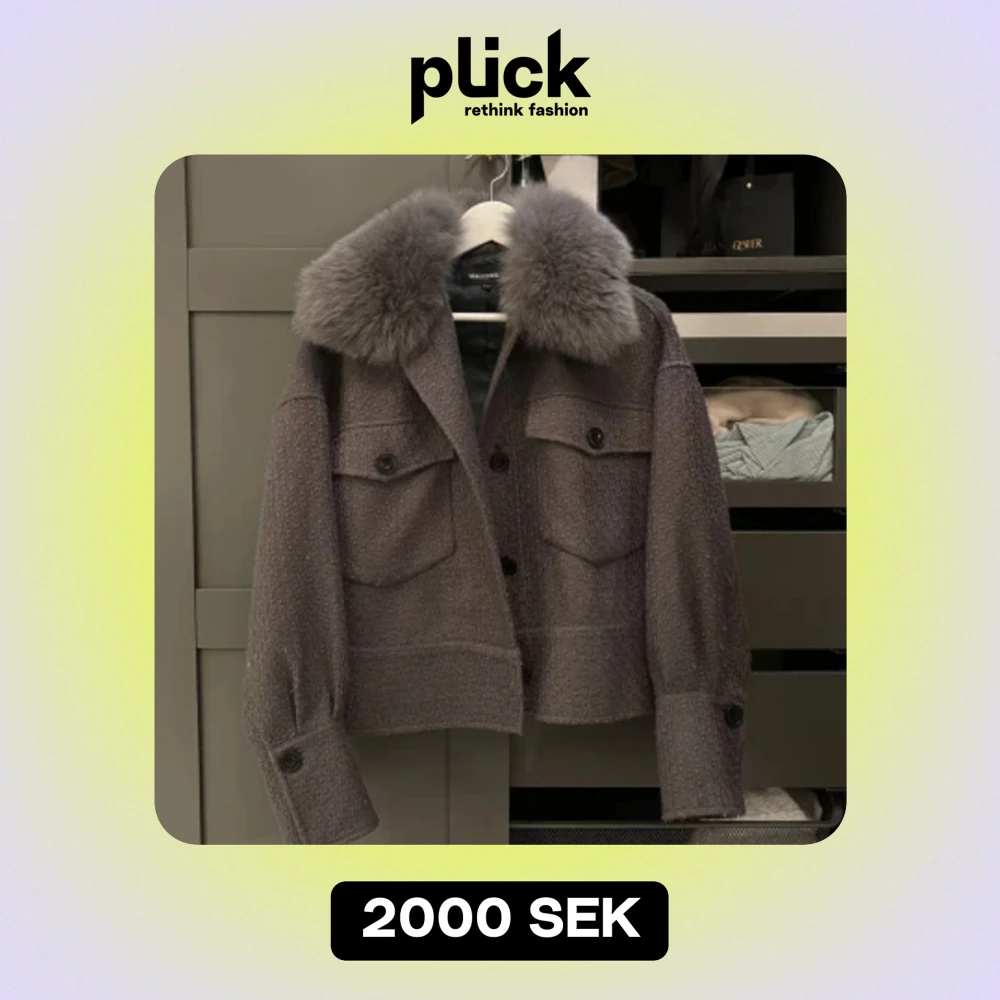 Så fin grå meotine jacka med päls. Använd under en vinter, så bra skick förutom en knapp som sitter lite löst. Storlek s/m. Nypris 3500❤️
