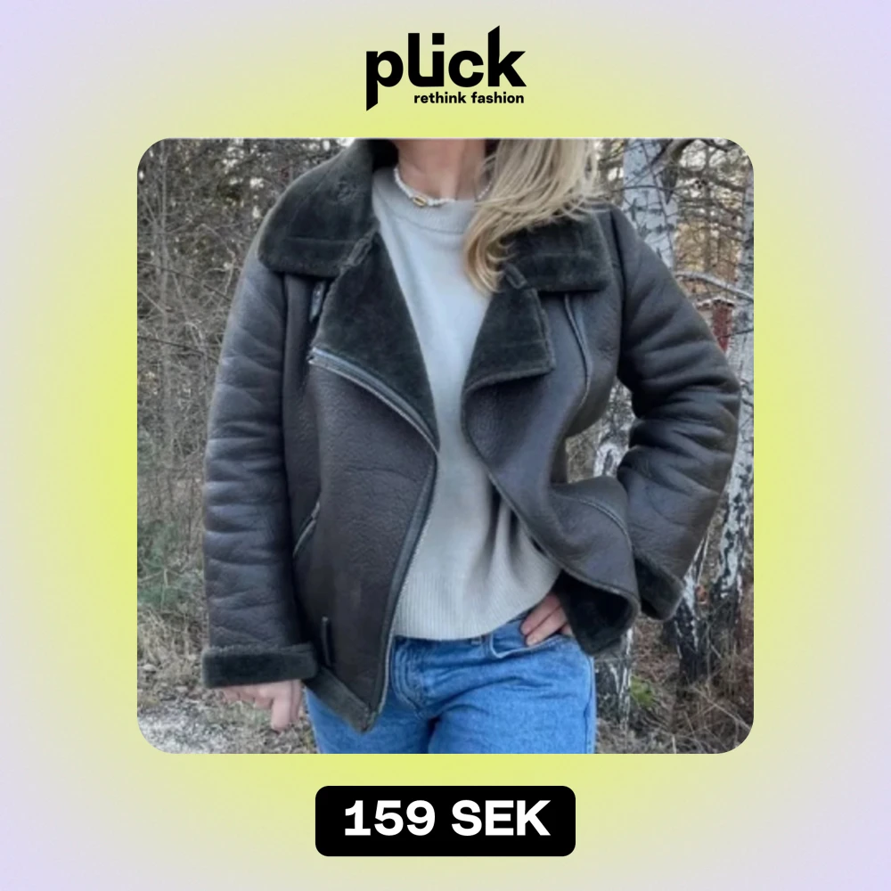 Den är strl M men passar även S. Super snygg läderjacka som passar perfekt till vintern. Använd några gånger.