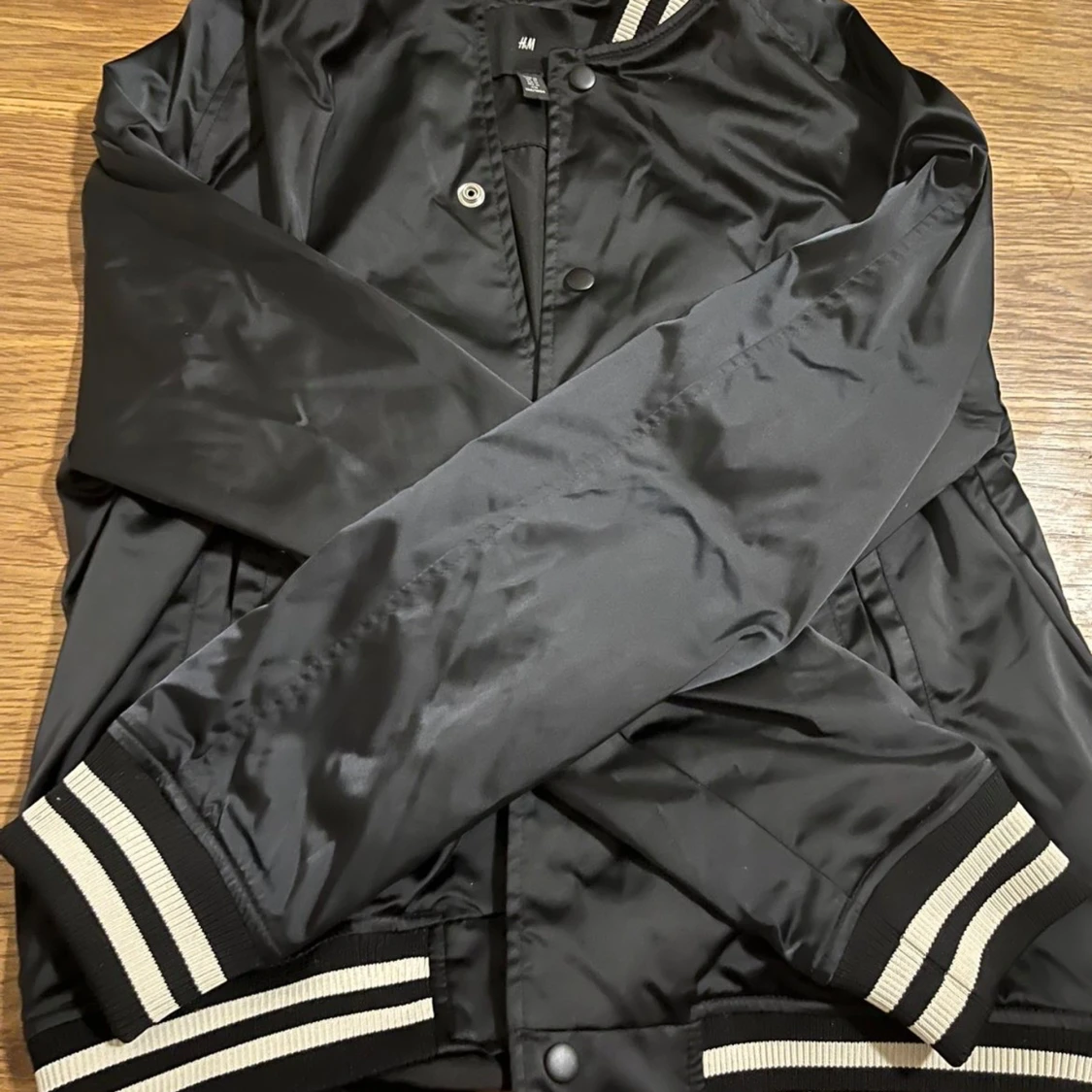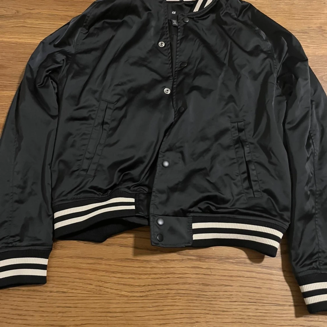 Svart bomberjacka från H&M i storlek M. Jackan är i bra skick och har bara använts några få gånger, fråga gärna om du har funderingar, offer tas emot.