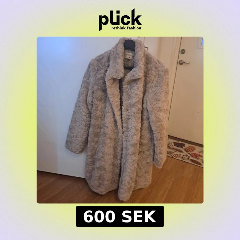Mysig beige teddyjacka från Mywear i storlek M. Jackan har en fluffig textur och långa ärmar, perfekt för kyliga dagar. Den har en klassisk krage och stängs med dolda knappar framtill. Oanvänt för att det är liten för mig.