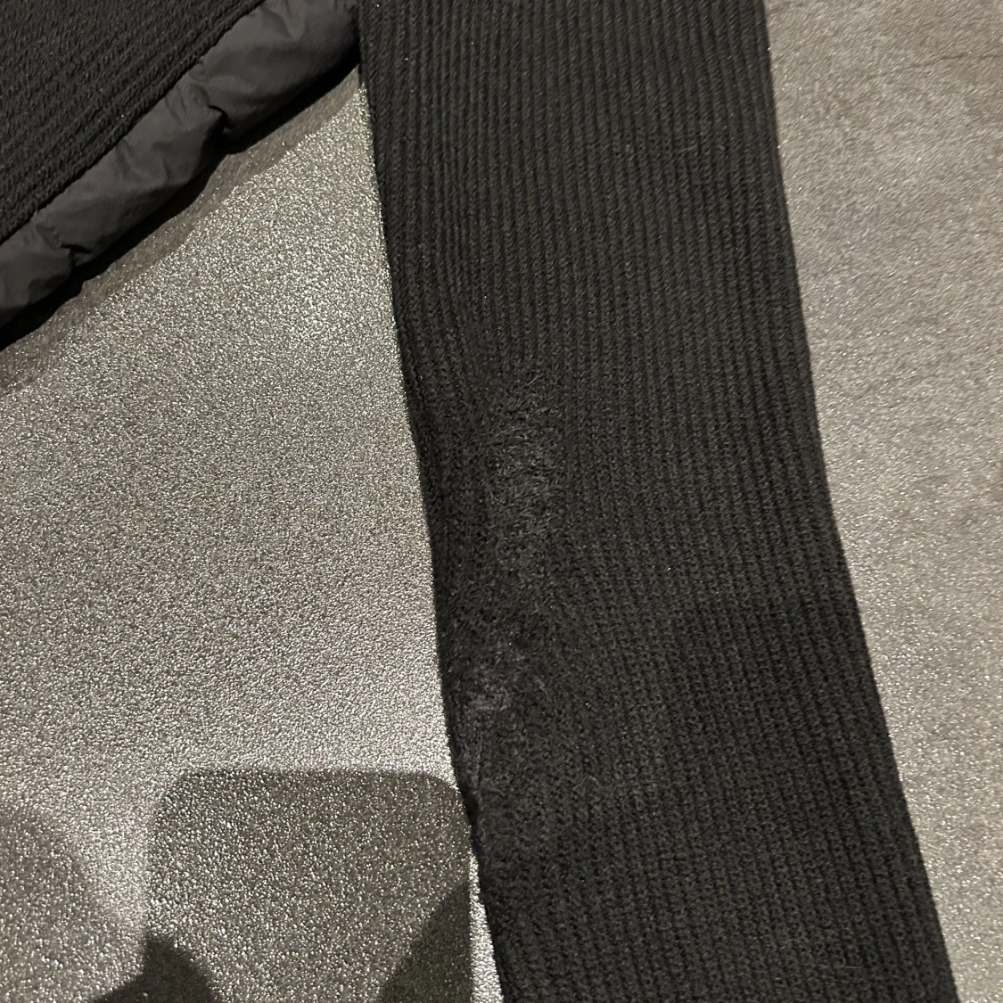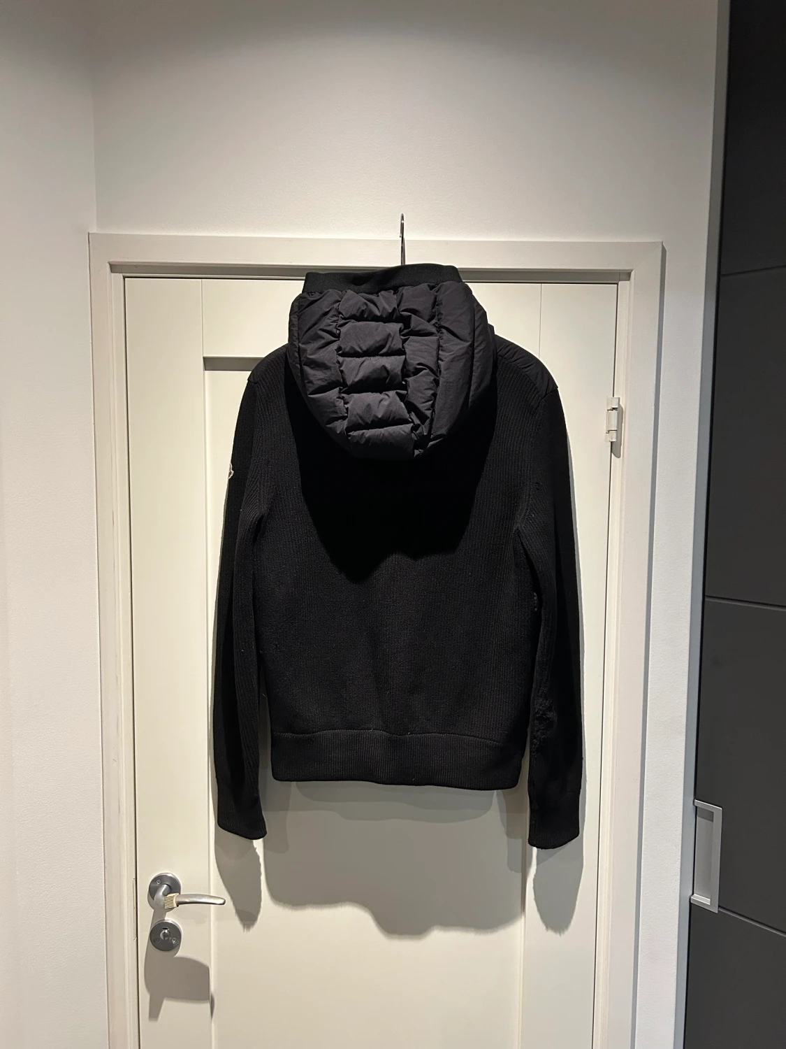 Hej, Säljer en svart Moncler cardigan i storlek L men sitter mer som L/M. Jackan är i ett mycket bra skick den enda defekten är en lagning på underarmen. Då lagningen är på underarmen så märks inte detta av. Lagningen är lagad hos en skräddare Mvh Ted 😁