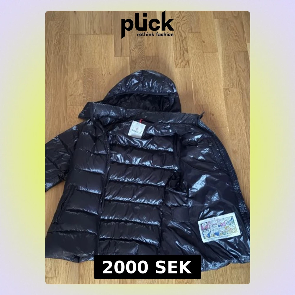 Säljer en svart pufferjacka från Moncler med glansig finish och huva. Jackan har dragkedja framtill, två sidofickor med dragkedja och ett snyggt Moncler-märke på ärmen. Perfekt för kalla dagar och har en cool, modern look.