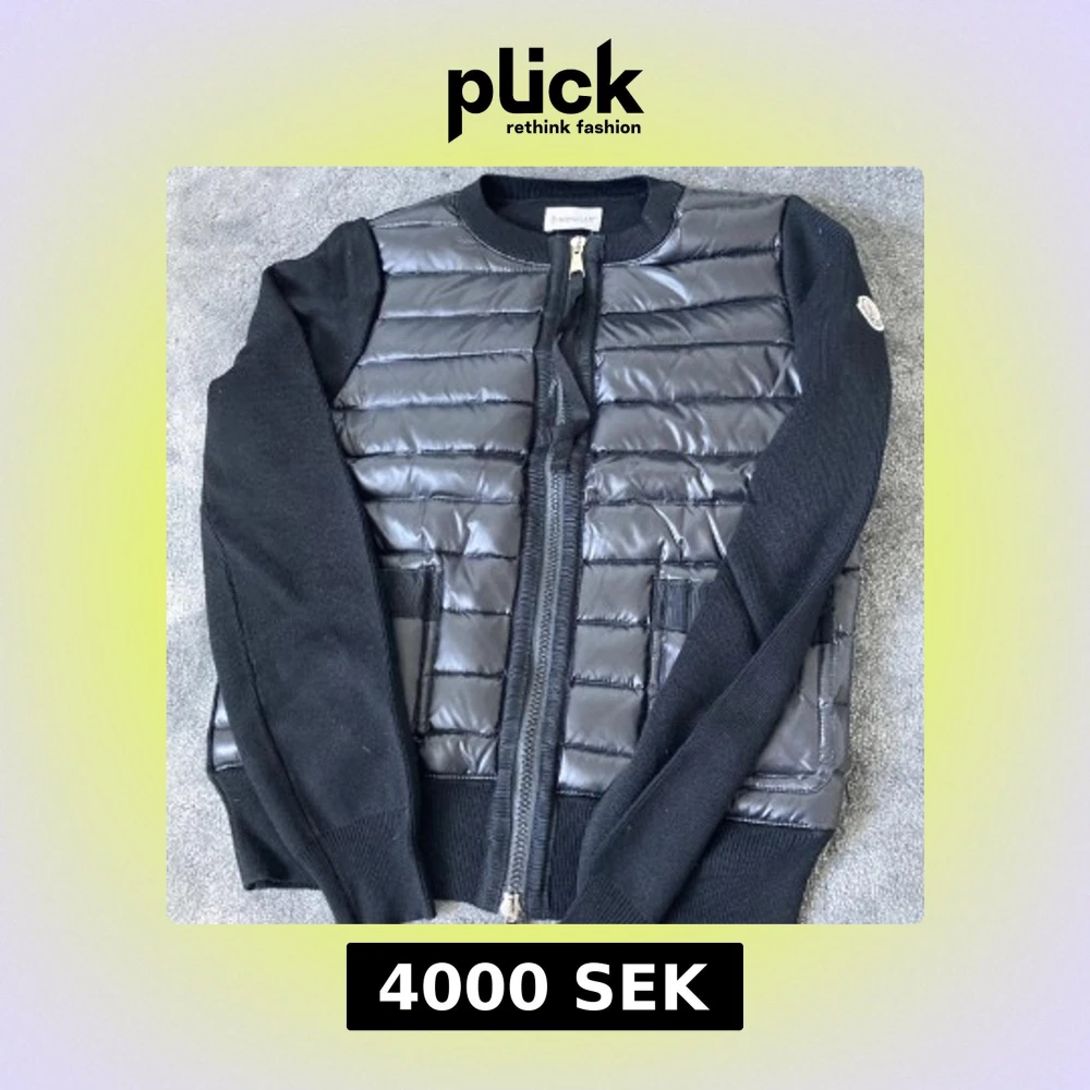 Svart cardigan jacka från Moncler som är glansig. Jag köpte den på plick men skicket är som nytt. Lånade bilder, fråga om egna🩷🩷 storlek 2 men den sitter som en XS/S (Fråga även om bild på orderbekräftelsen om ni vill se, har även kvar prislappen m.m och det kommer skickas med)