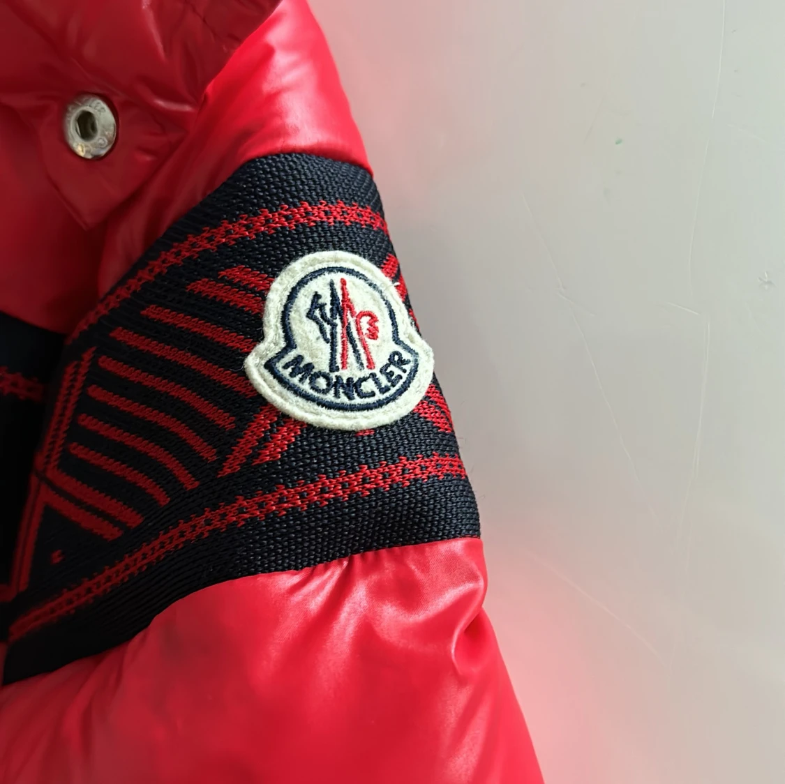 Säljer en snygg röd dunjacka från Moncler. Jackan har en cool design med blåa detaljer och Moncler-logga på ärmen. Den är perfekt för kalla dagar med sin varma vaddering och har en praktisk dragkedja framtill. Huvan är avtagbar och ger extra skydd mot väder och vind. Passar perfekt för vintern! Ny pris 17000 det låter dyrt men det finns inte många i världen!