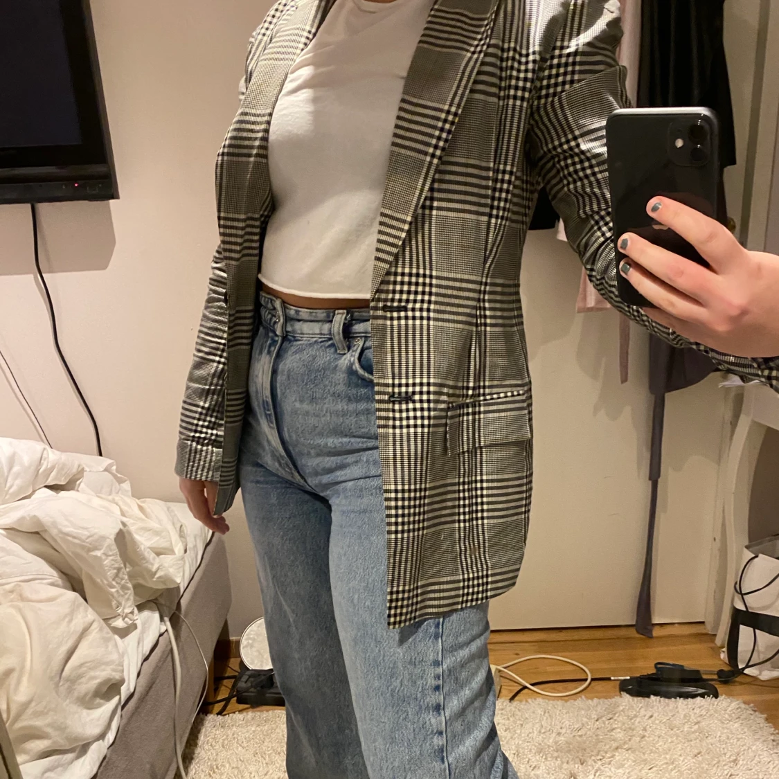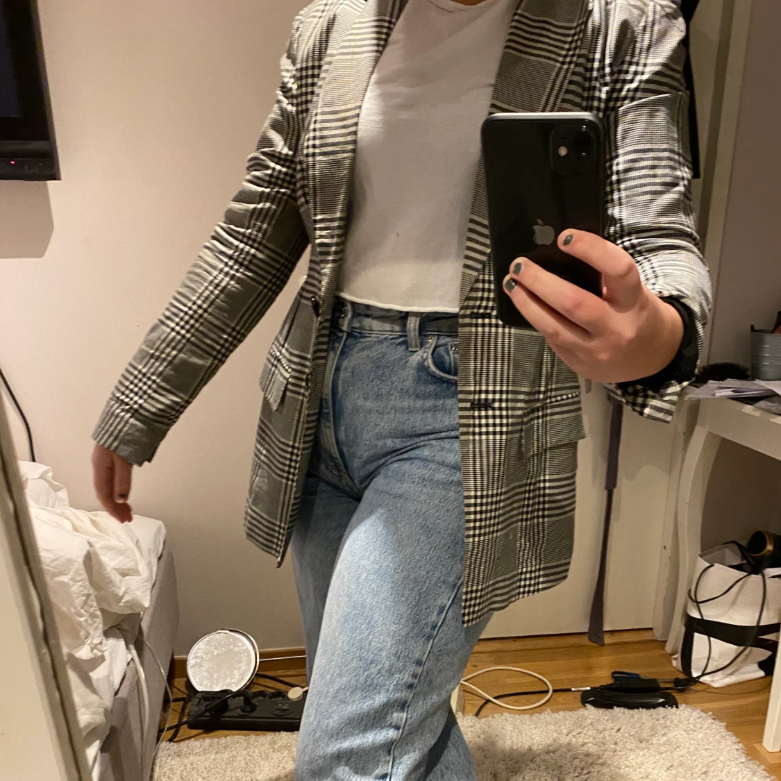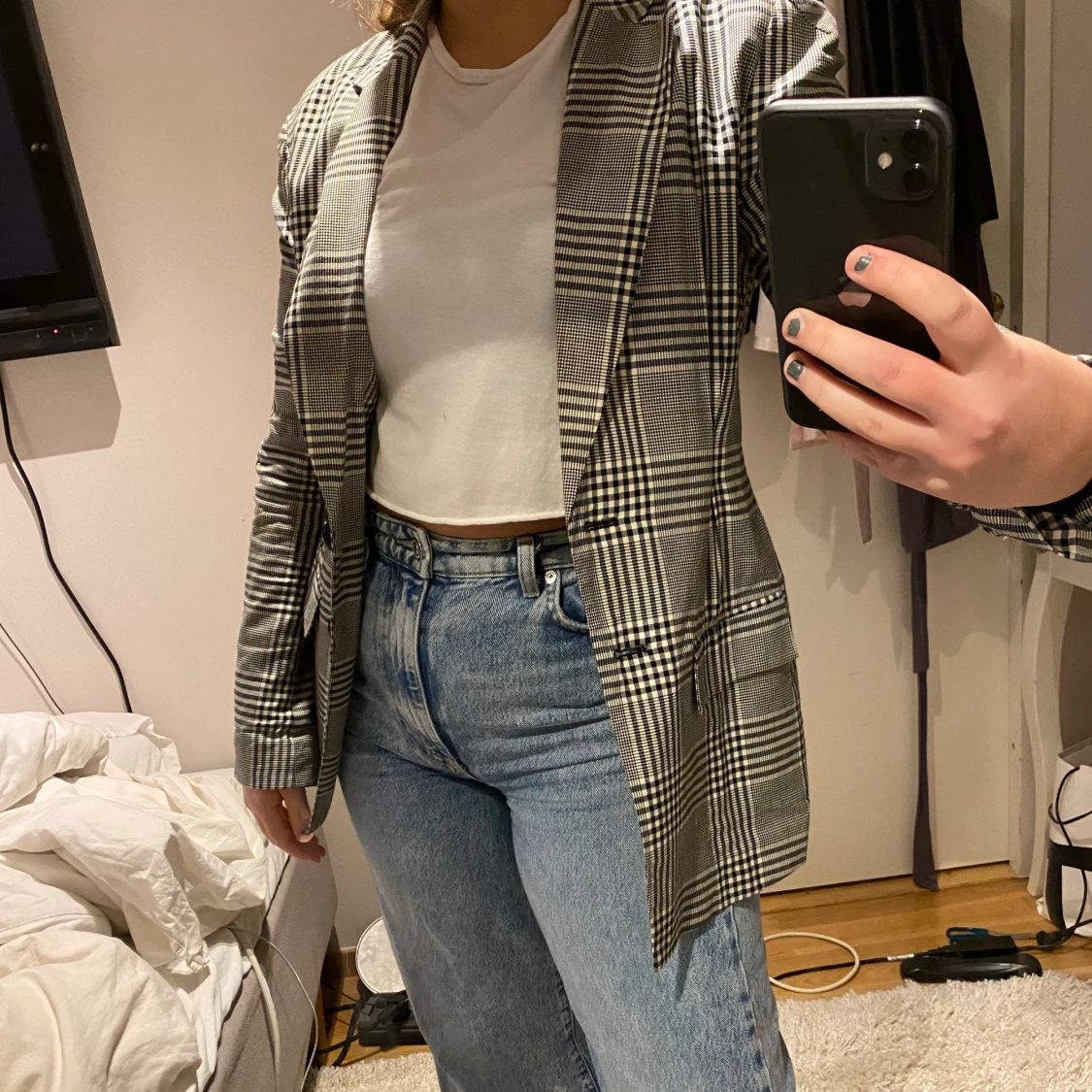 Fin rutig kavaj, använd fåtal gånger och är som nyskick! Är i st 36 men passar 36-38