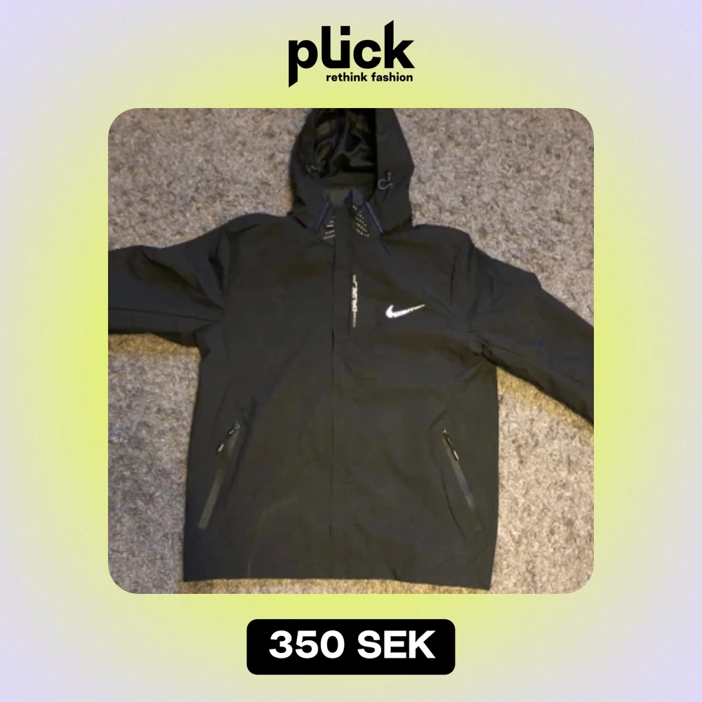 Säljer Nike jackan eftersom den inte används. Fungerar som vindjacka, tränings jacka och regnjacka. Luvan är avtagbar och går att spänna. Jackan har också vattentäta fickor och är nytvättad. Jackan är i storlek XXL men sitter som M - L.