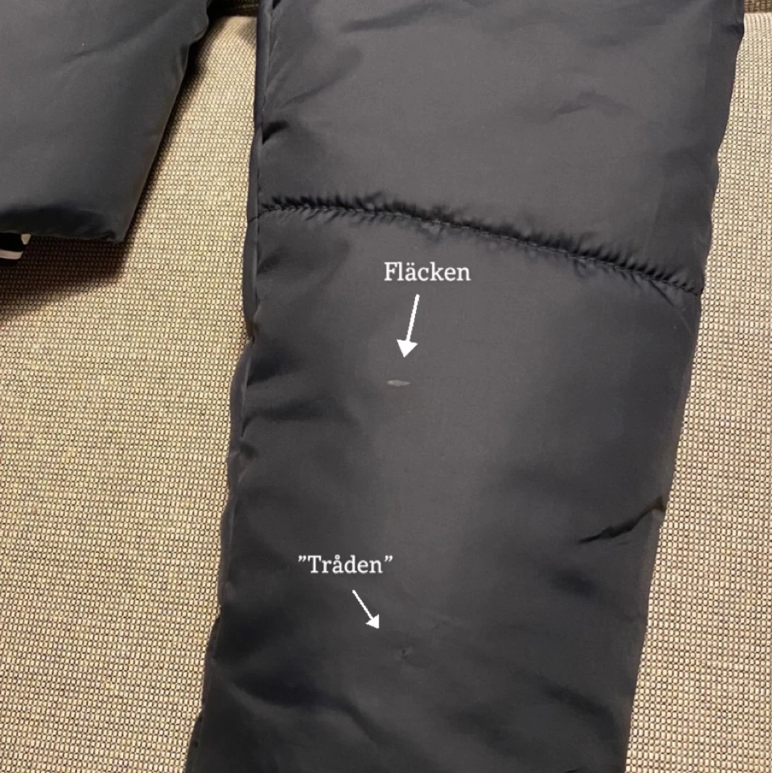En fodrad Jacka som inte kommit till stor användning. På baksidan av både höger och vänster arm finns en väldigt liten fläck. Det är dessutom en del av en tråd som ”stretchats” på baksidan av höger arm (se bild) - därav priset. Skriv för fler bilder :)