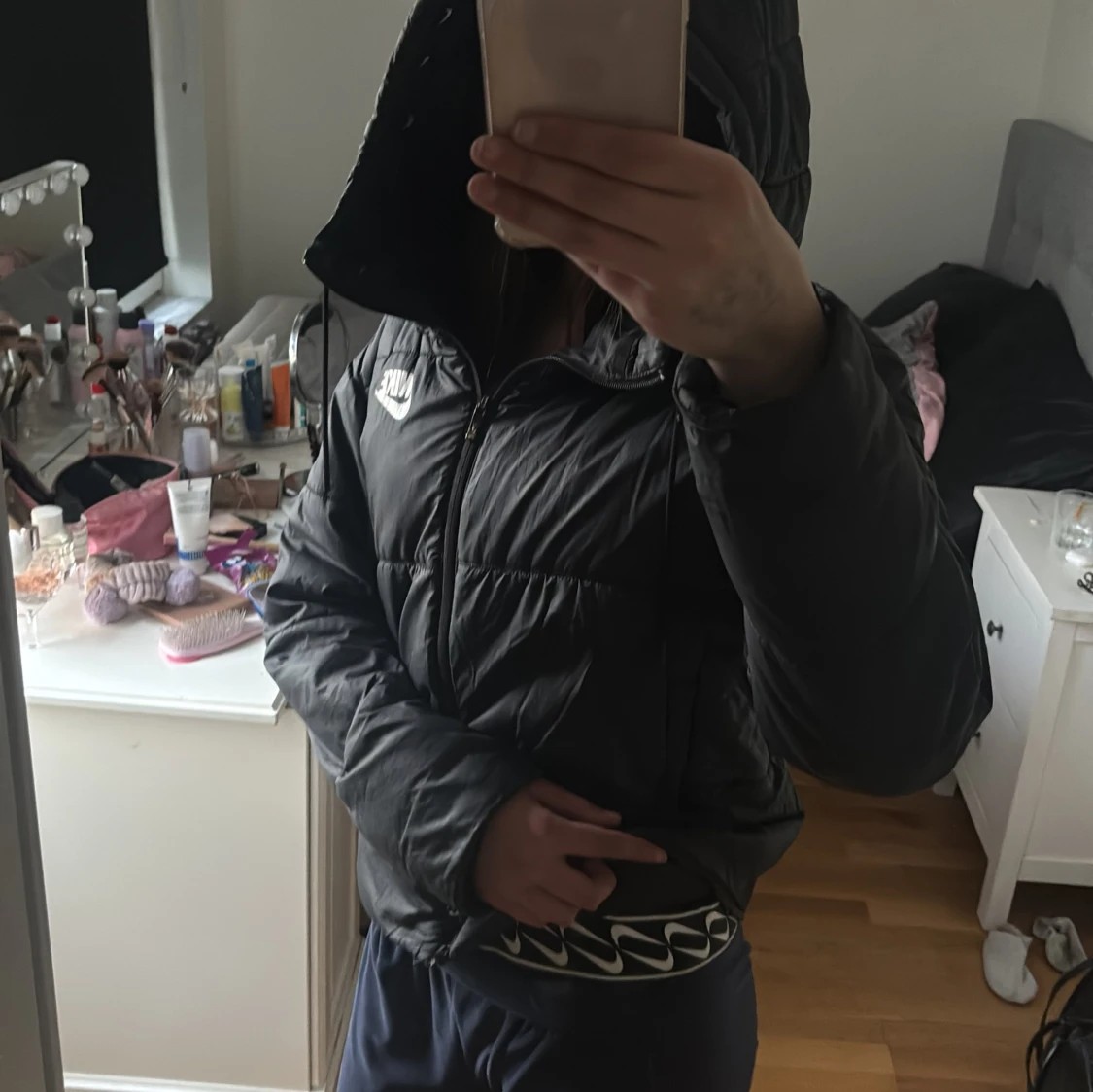 Säljer en svart pufferjacka från Nike då den inte kommit till användning. Jackan har lång ärm och är perfekt för kyligare dagar. Klassisk logga på bröstet och vid midjan är en enkel, sportig design.