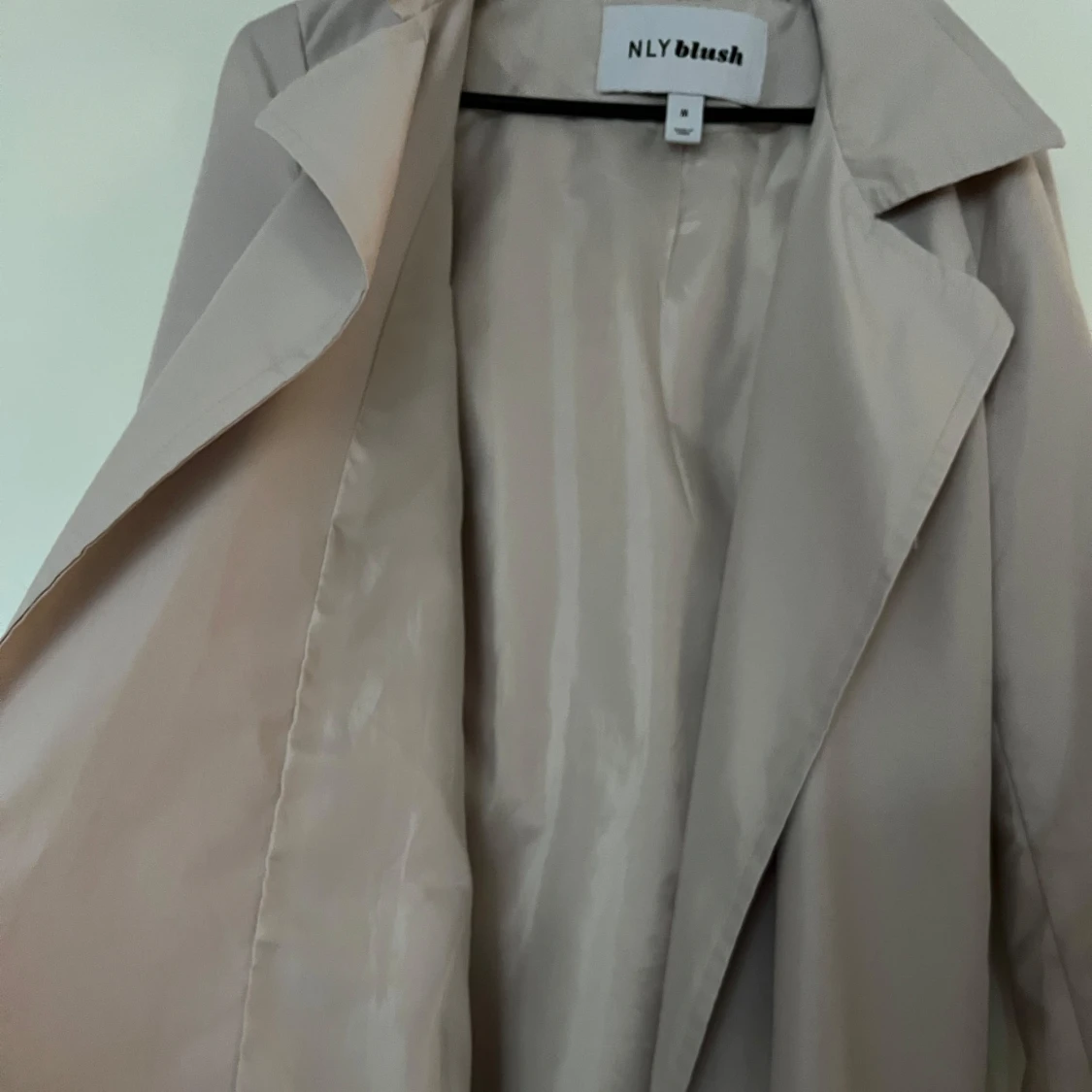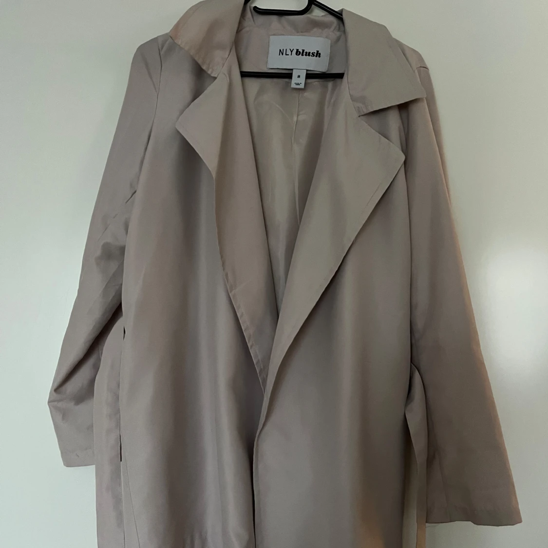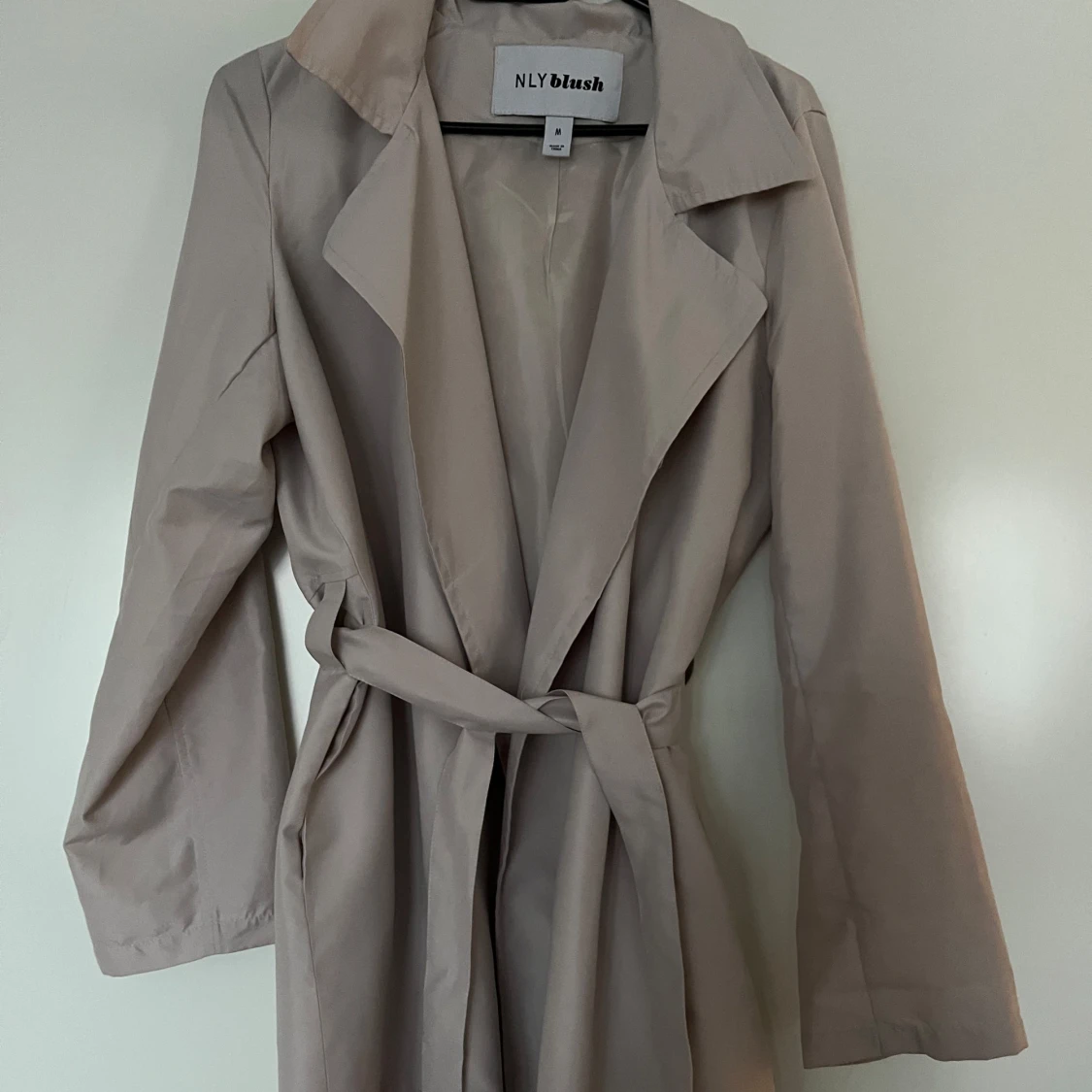 Sommar/vår jacka från Nly Blush i storlek M, beige. Jackan är i nyskick. 100% polyester. Skärp i midjan som även går att ta av. Längd ca 80 cm. Ärmlängd mätt från axeln ca 63 cm.
