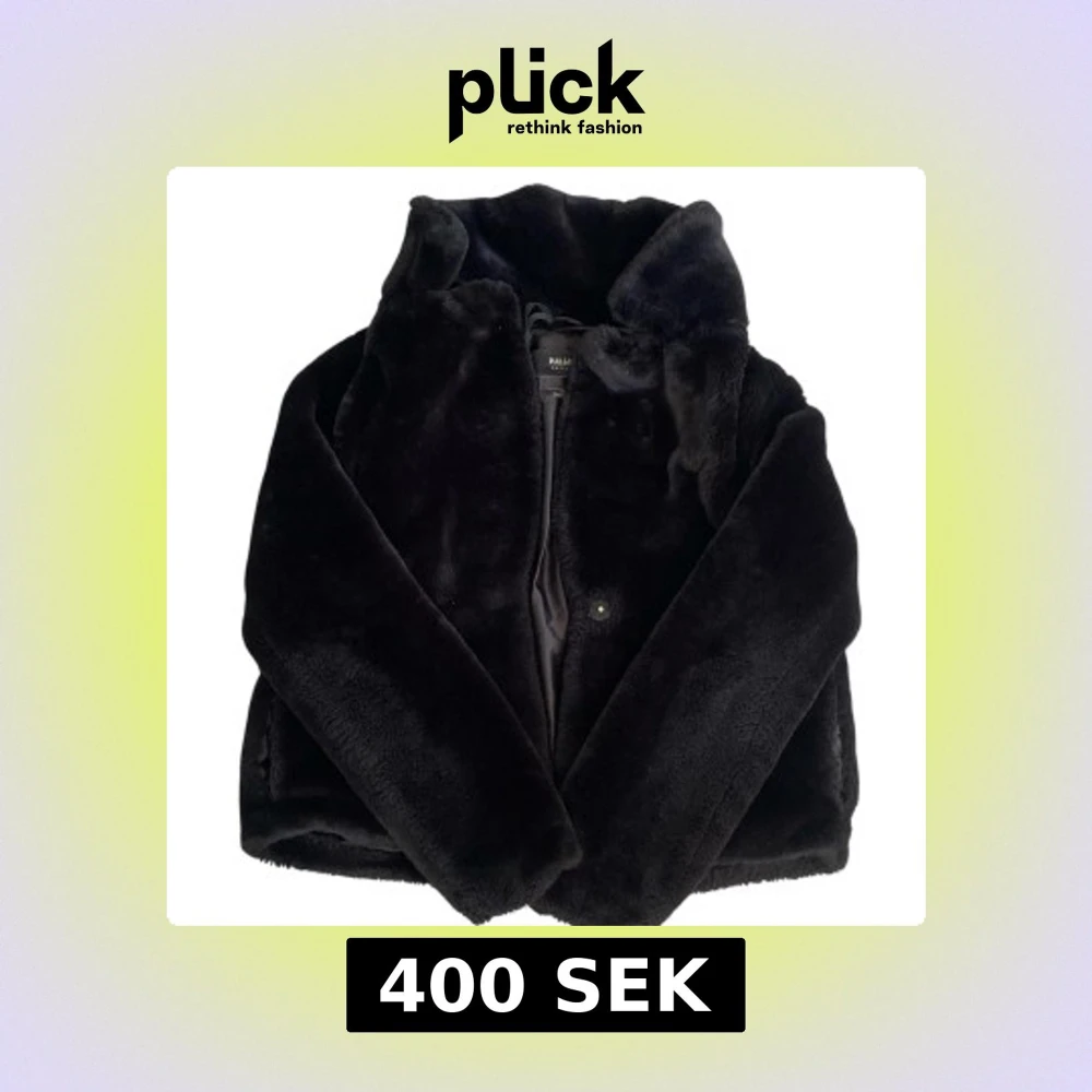Mysig svart pälsjacka från Pull&Bear med hög krage och klassisk passform.