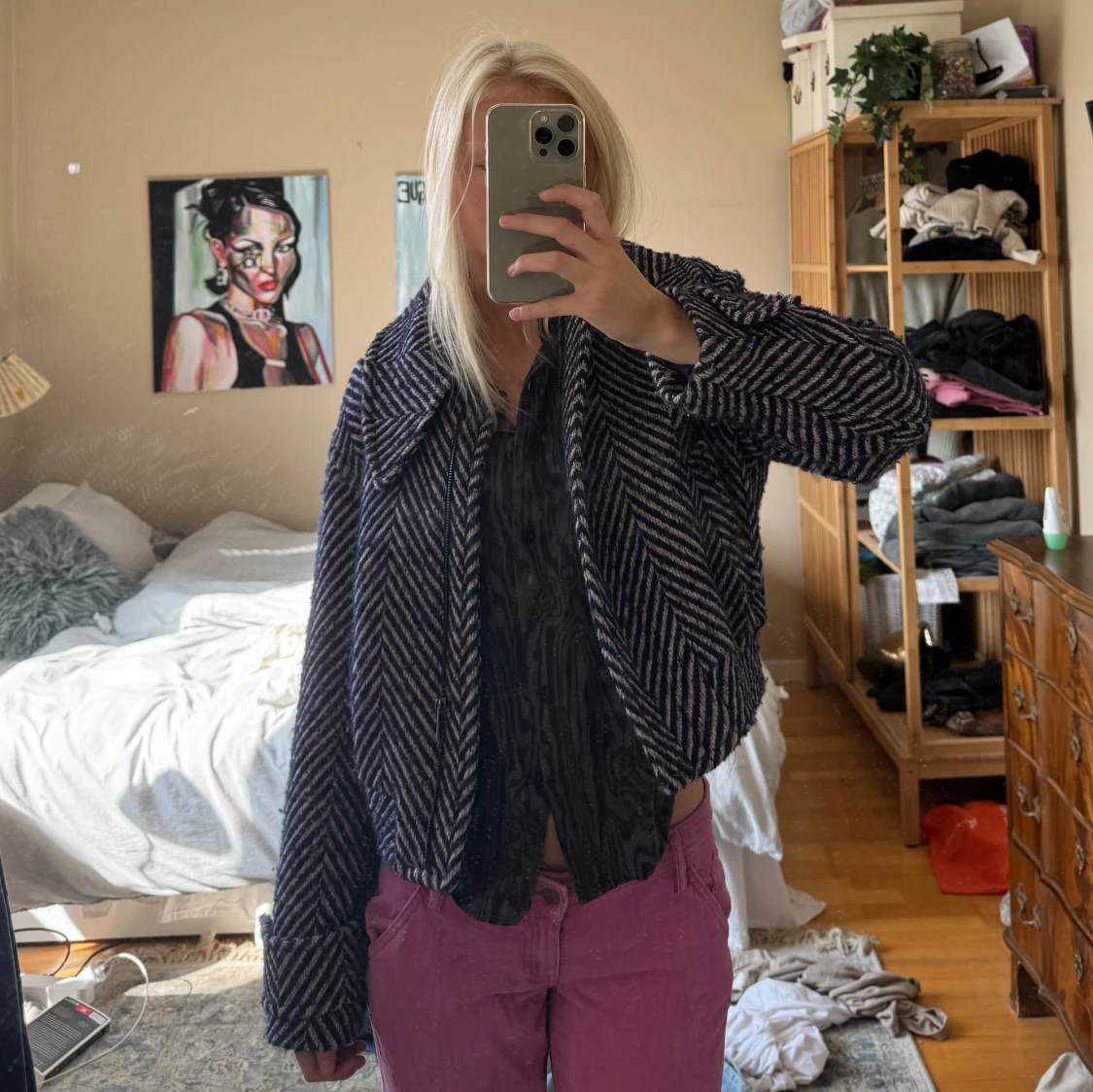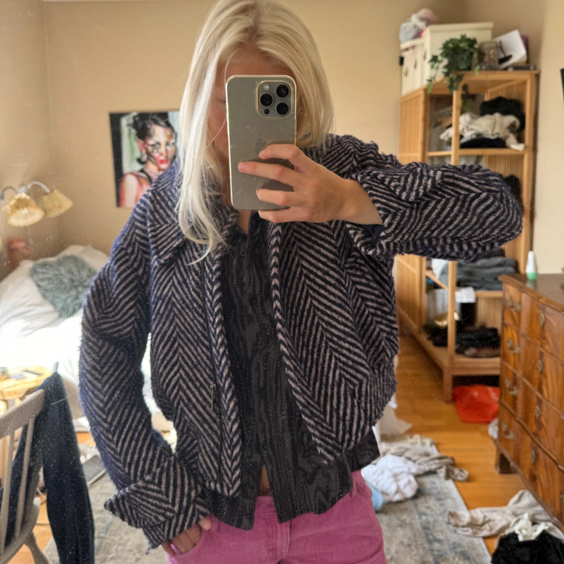 Jättefin kappa / jacka från Other Stories🩷🪼Med blå och ljusrosa ränder, storlek 34 & superfint skick! Alltså XS men skulle säga xs/s