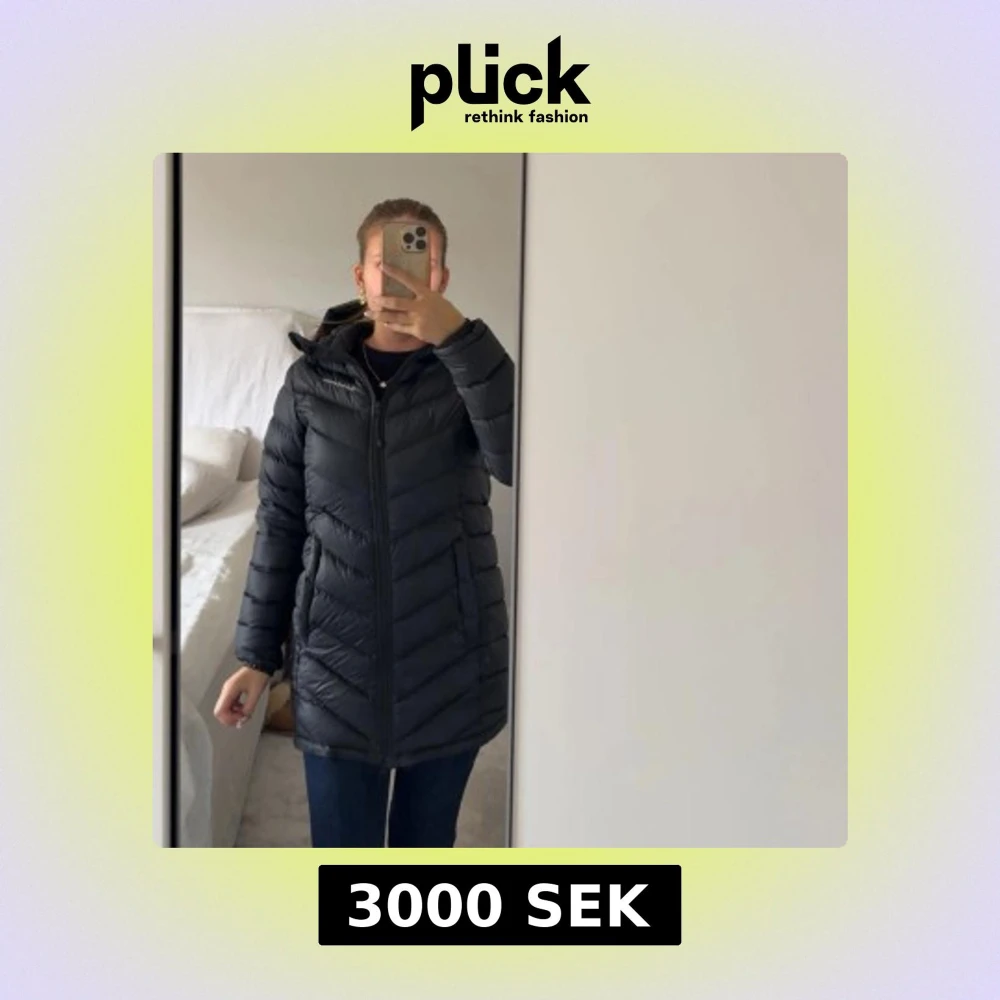 Svart lång dunjacka från Peak Performance med huva och dragkedja framtill. Jackan har tyvärr en defekt på ena armen men inget som syns när man har på sig den! Perfekt till hösten/vinter. Köpt för 5000kr