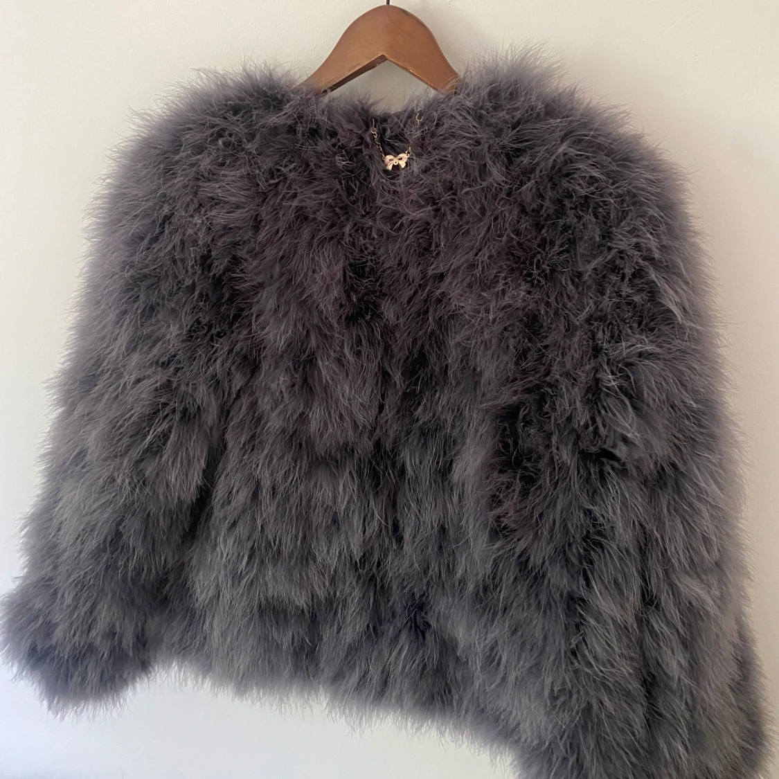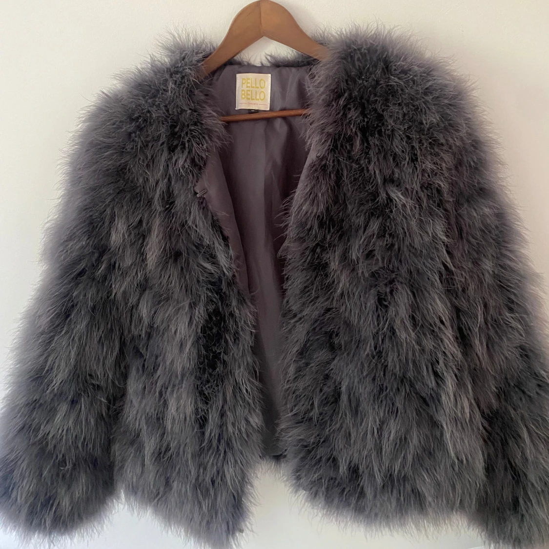 Säljer en fluffig och lyxig grå pälsjacka från Pello Bello. Jackan har lång ärm och är helfodrad, perfekt för att sticka ut under utgångar. Snygg och trendig modell!