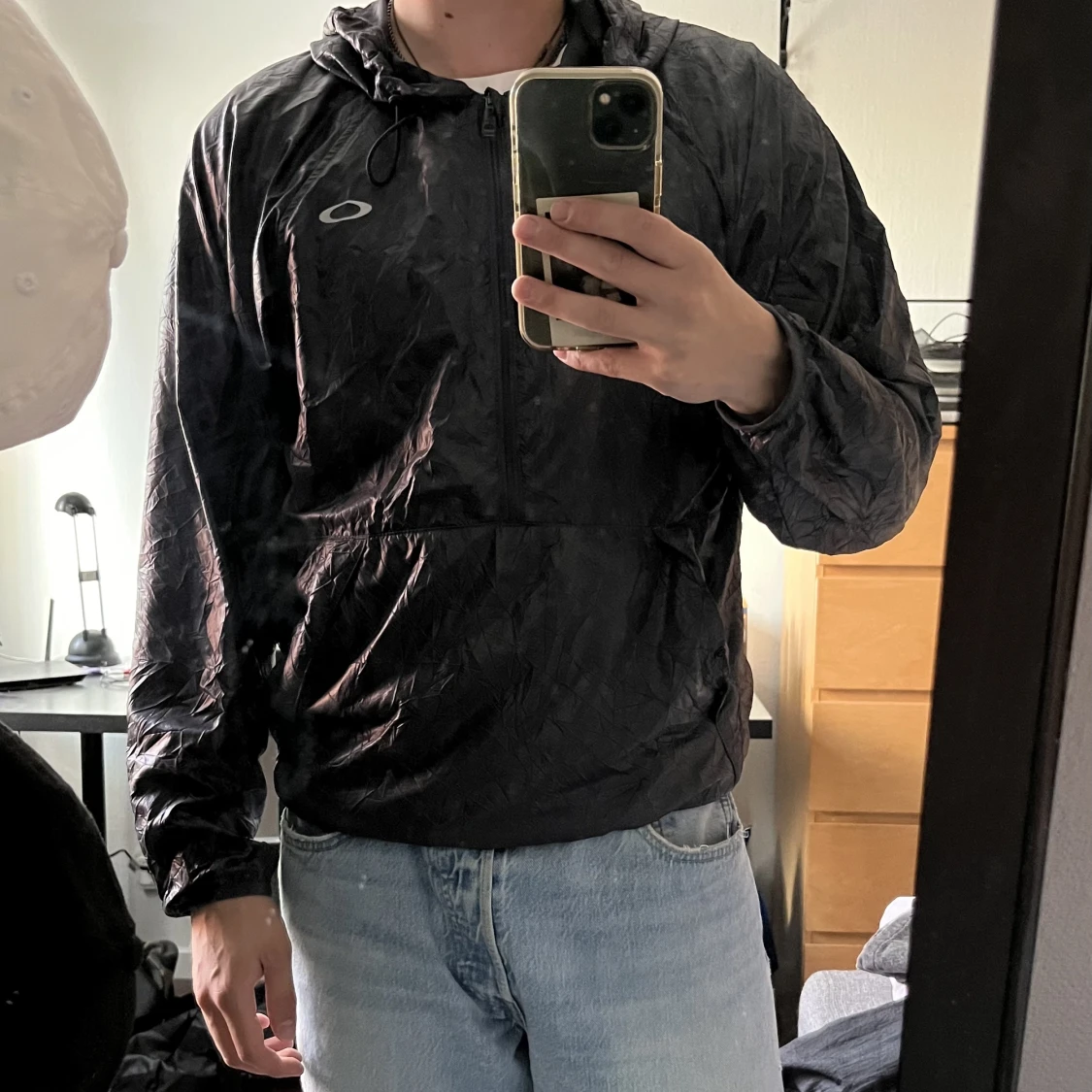 Skit nice vintage oakley jacka. Windbreaker material, jag är 175 och den sitter så på mig, men tagen säger XS.