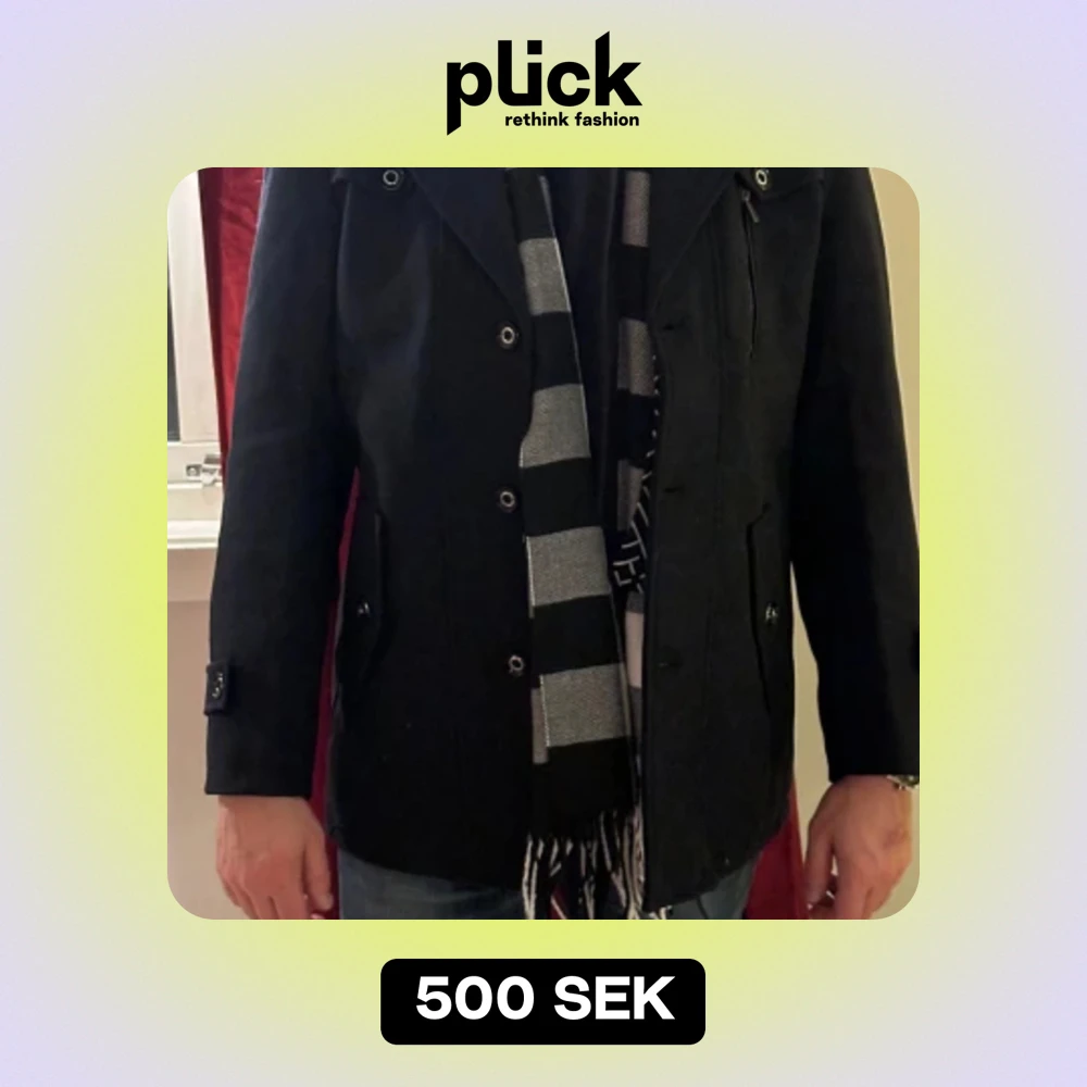 Snygg rock/kappa m. scarf säljes Strl; M Färg; marinblå + grå/blå randig scarf I nyskick aldrig använd