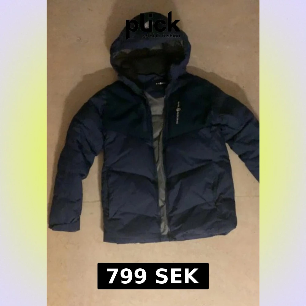 Säljer en mörkblå pufferjacka från Sail Racing med huva och dragkedja framtill. Jackan har ett stilrent Sail Racing-tryck på bröstet och en logga på huvan. Perfekt för kalla dagar med sin vadderade design och sköna passform.