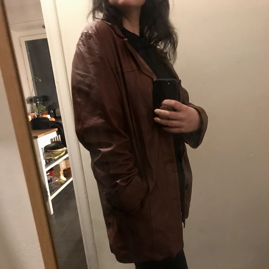 Vintage skinnjacka i röd/brunt (äkta) skinn. Storlek M och pris är 200kr. Skriv gärna om du vill ha fler bilder/detaljer!