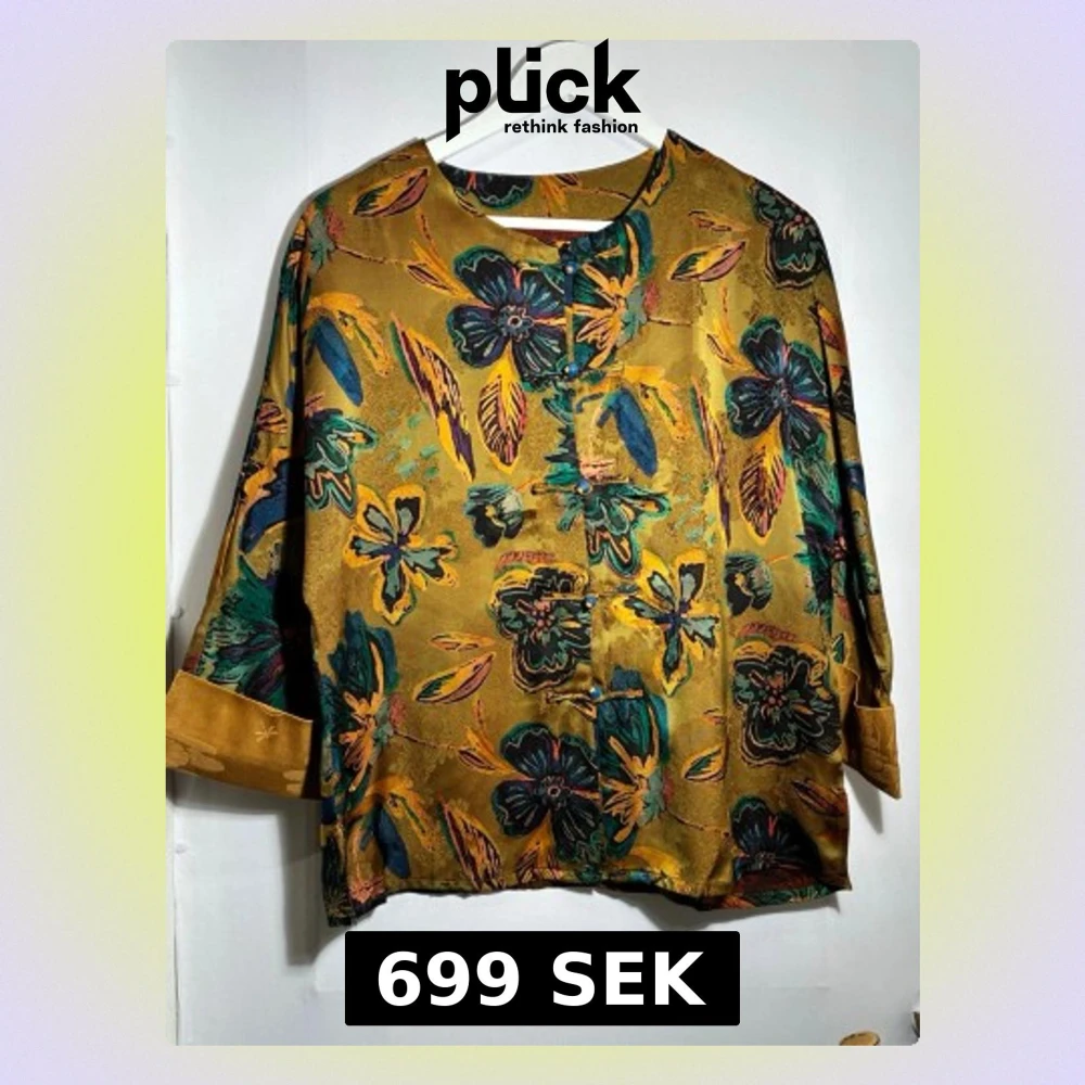 Elegant jacka i 100 % siden med ett rikt, måleriskt blommönster i varma gröna och gyllene toner. Tyget är mjukt, lätt och följsamt med en naturlig lyster som ger plagget ett exklusivt uttryck. Avslappnad passform som faller fint på kroppen. De dekorativa knäppningarna framtill ger en subtil orientalisk känsla och gör jackan både personlig och tidlös. 🧵 Material • 100 % siden 📐 Passform • Bekväm, något rymlig modell • Lätt att bära både som tunn jacka eller som överdel Perfekt att kombiner