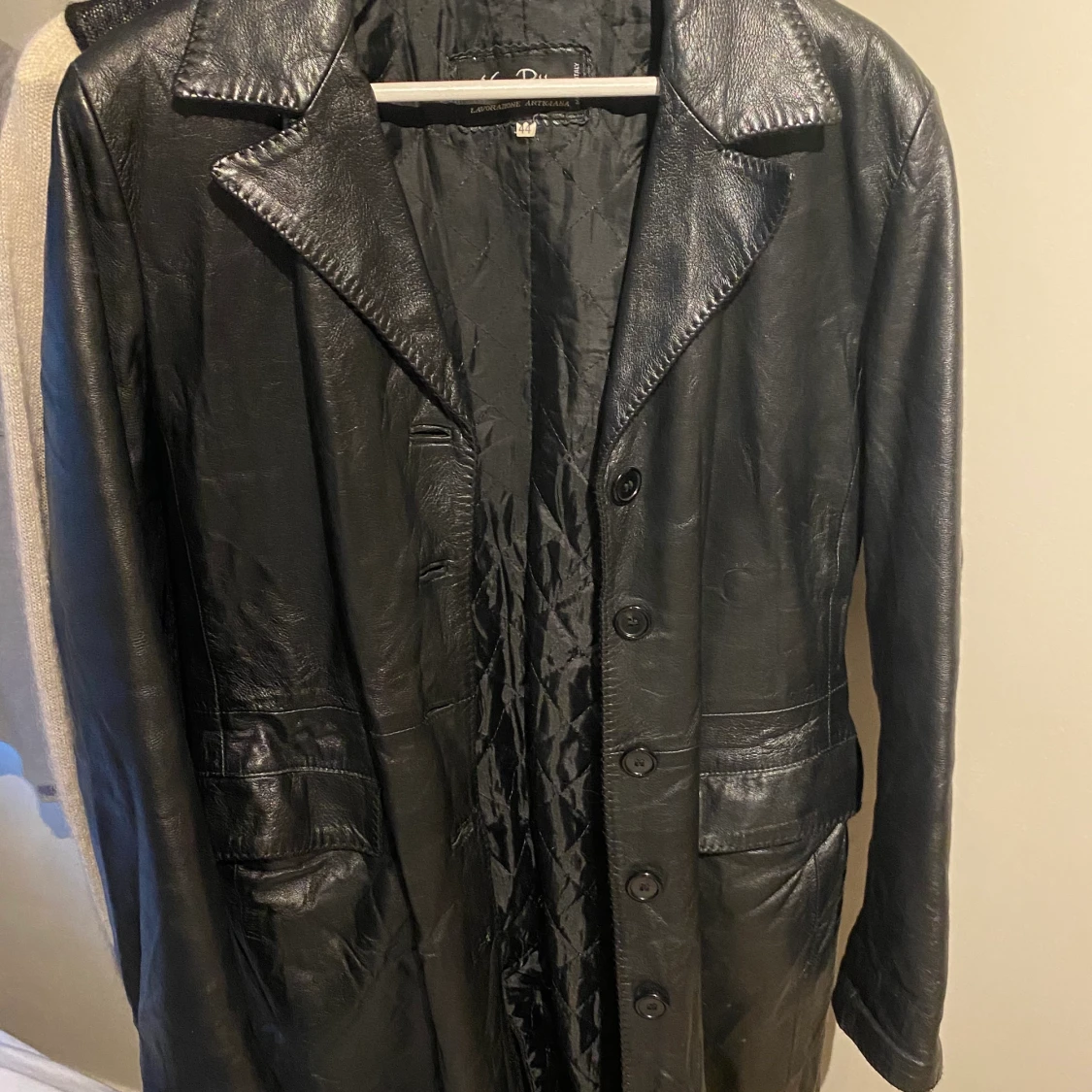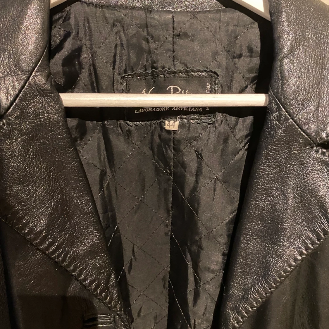 Lång skinnjacka. Satt ej som jag ville så säljer vidare från förra ägaren. Från secondhand. Fodrad och lite oversized. S/M. Köpare står för frakt. Pris kan diskuteras!