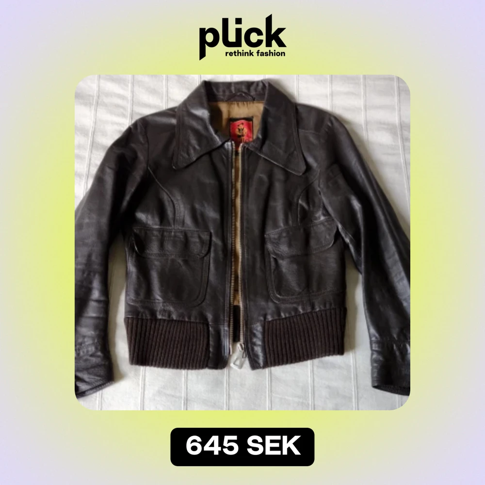 Vintage kort brun jacka i skinn i en skitsnygg modell från Kyller. Storlek 38 men jag skulle säga att den passar bäst till de som har storlek XS/S. Några små märken i lädret, lagningar i fodertyget vid armhålorna och en knapp på ena ärmen saknas.