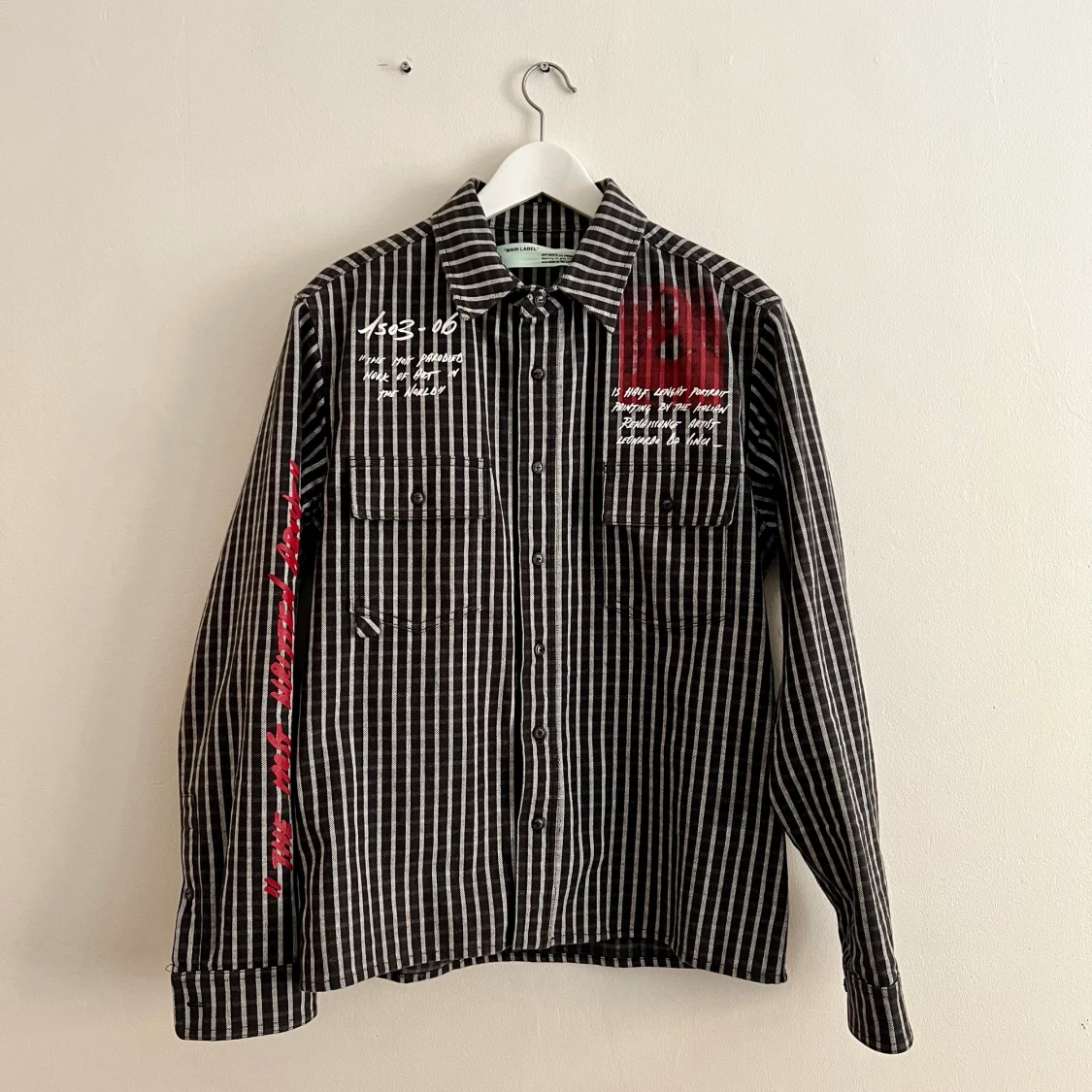 Off white jacka med Mona Lisa tryck på ryggen bra skick storlek M