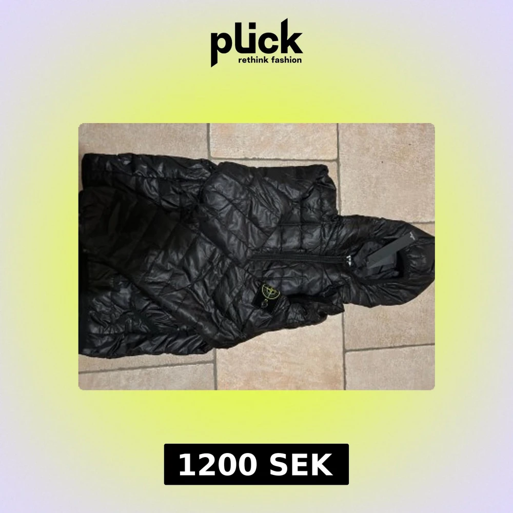 Aldrig använd! Svart pufferjacka från Stone Island med huva och quiltad design. Jackan har dragkedja framtill och den klassiska Stone Island-loggan på ärmen. Materialet är syntet och jackan har en loose passform, perfekt för kalla dagar. Och nu till vintern. Den e lite liten i storlek perfeck för dig som har medium men passar även large