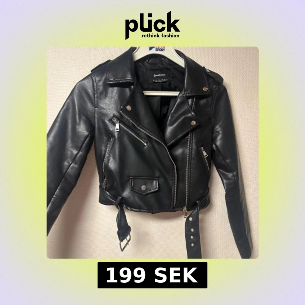 Snygg svart skinnjacka från Stradivarius med klassisk bikerstil. Jackan har flera silvriga dragkedjor, och ett bälte i midjan. Croppad modell med långa ärmar och coola detaljer som ger en edgy vibe.