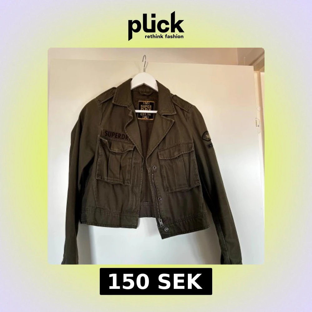 En snygg, militärgrön jacka från Superdry. Perfekt till våren! Knappen på ena fickan har lossnat, men har sytt dit nya knappar så fickan fungerar utan problem och syns ingenting. Mer bilder kan fås vid begäran 💚☺️