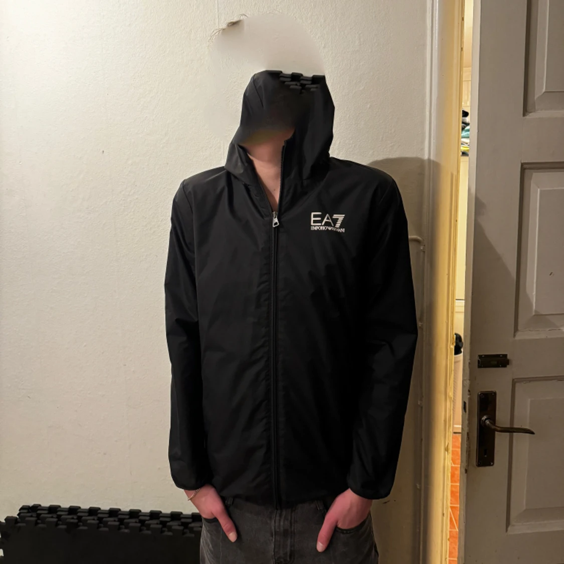 Svart Armani jacka, bra kvalitet men det är ett hål i högra fickan men det syns inte passar om du är runt 170. Hör av dig för mer info!