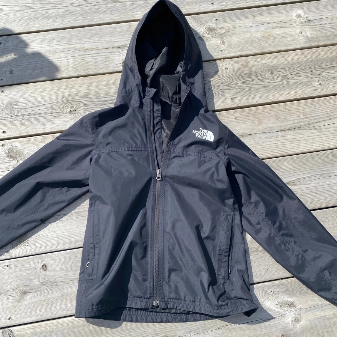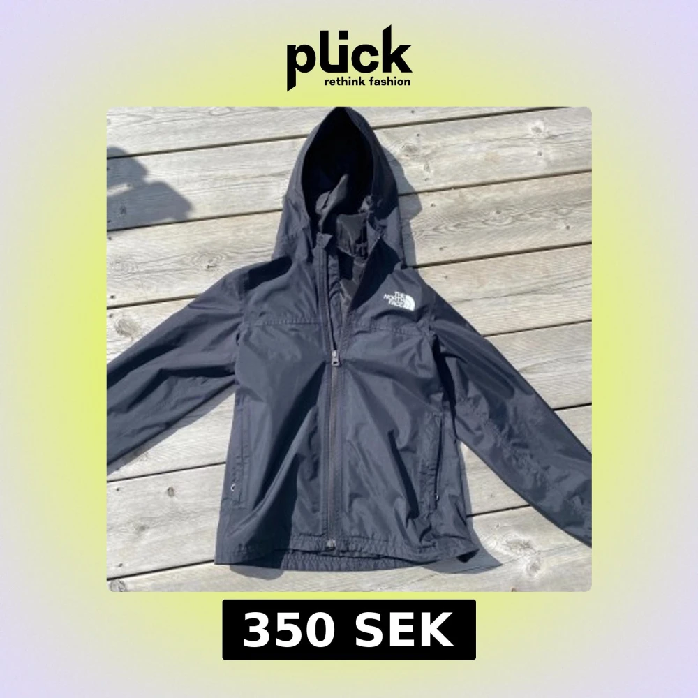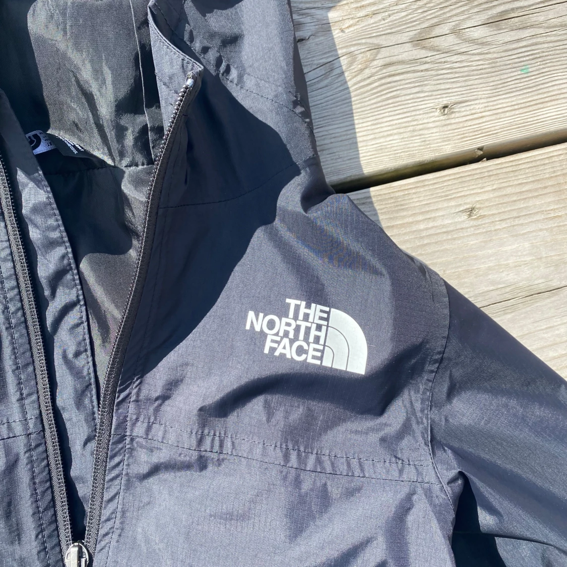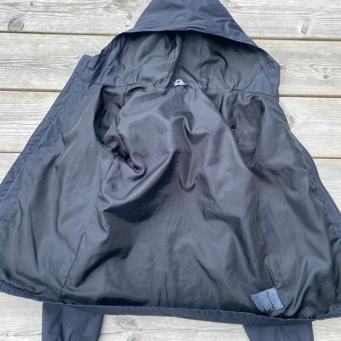 Svart vindjacka från The North Face med huva och hel dragkedja framtill. Jackan har två sidofickor med dragkedja och en vit logga på bröstet. Tillverkad i lätt och slitstark polyester, perfekt för blåsiga dagar. Original pris 899kr