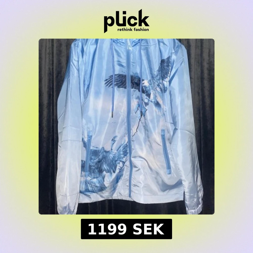 Säljer en ljusblå vindjacka från Trapstar med stora örntryck på både fram- och baksidan. Jackan har huva, dragkedja och två fickor framtill. Snygga detaljer med Trapstar-logga på ryggen. Helt ny🙌