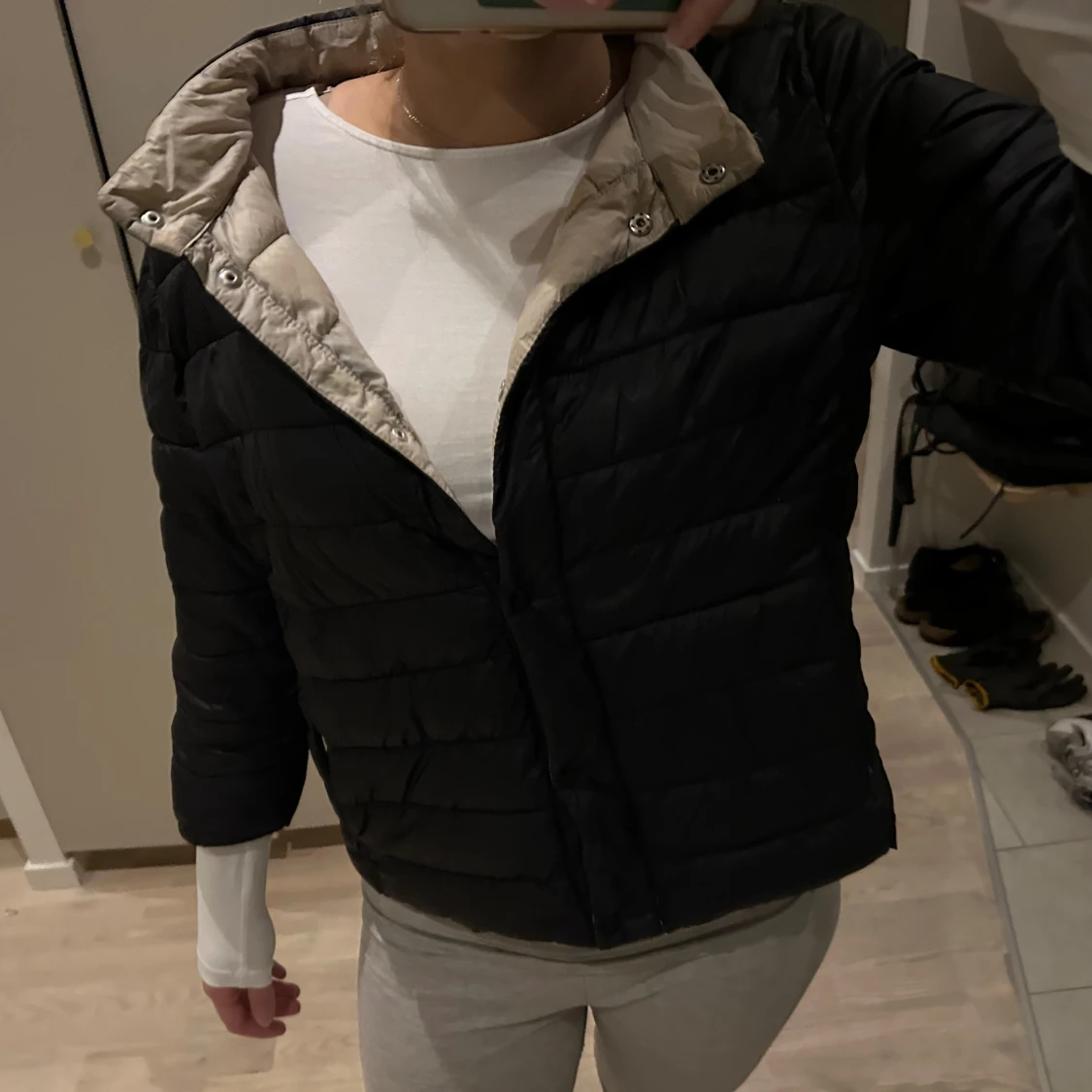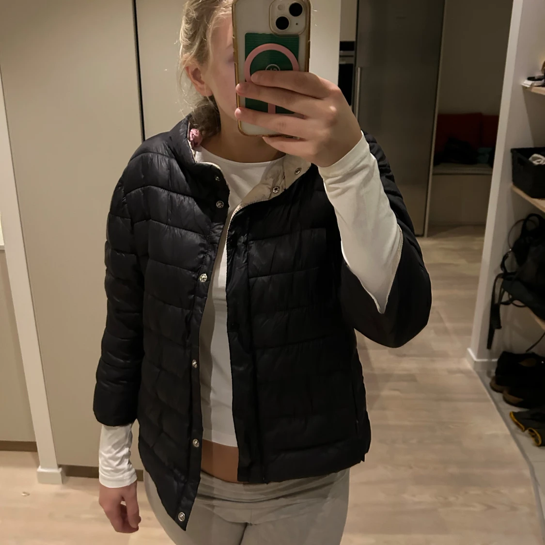 Snygg trekvartsärmad jacka, knappar som går att stänga, krage som man kan knäppa upp. Köpt från ett uf företag för 600, står ingen storlek men passar mig som har S/M