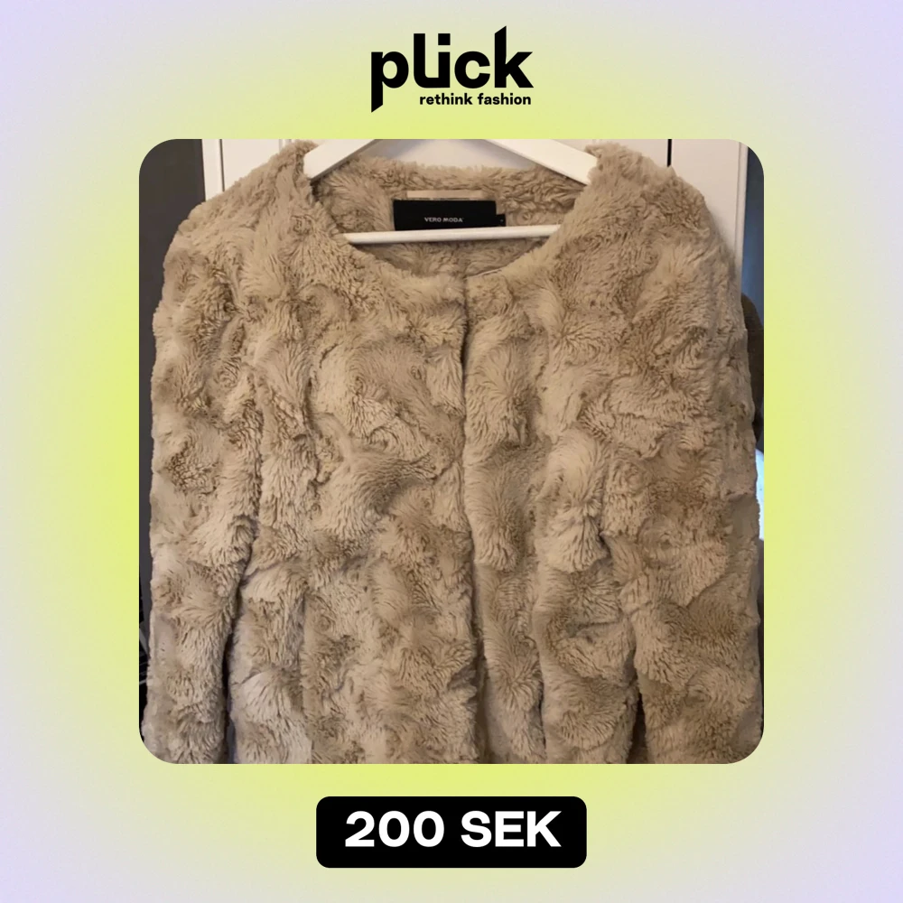 Supermjuk och fluffig beige pälsjacka från Vero Moda. Perfekt för att hålla sig varm och stilren under kyliga dagar. Jackan har en enkel design utan krage och passar perfekt till vår och höstens kyliga dagar. Funkar utmärkt både till vardags och festliga tillfällen. Köparen får stå för frakten.