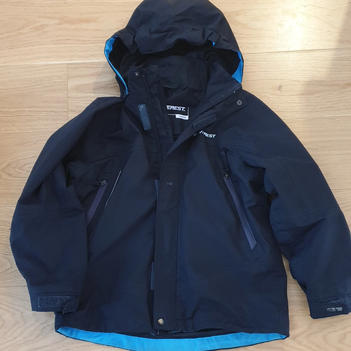 Stl.134/140, lätt vindjacka, gott skick, namnad med lapp att klippa bort