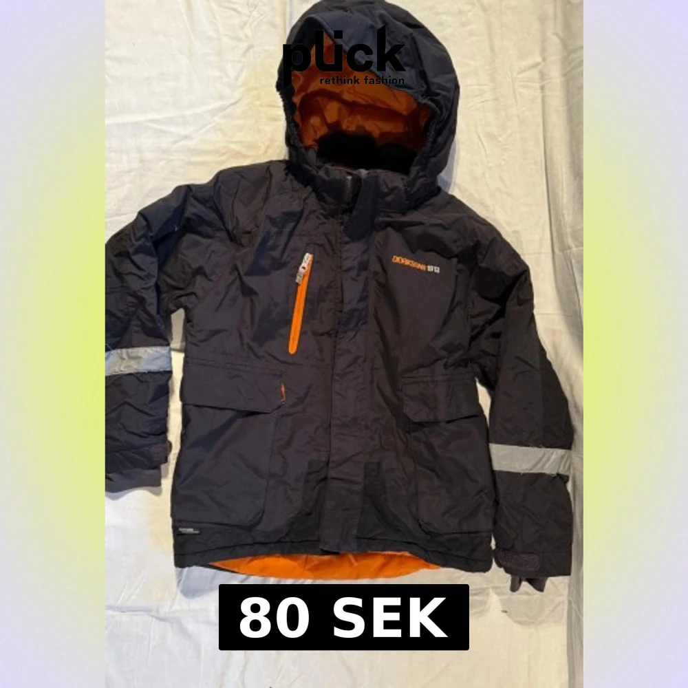 Svart vindjacka från Didriksons 1913 med orange foder och detaljer. Jackan har huva, flera fickor, reflexdetaljer på ärmar och rygg samt dragkedja framtill. Perfekt för blåsiga dagar och har en cool, sportig vibe med Storm System-teknologi. Pris kan diskuteras via snabb affär