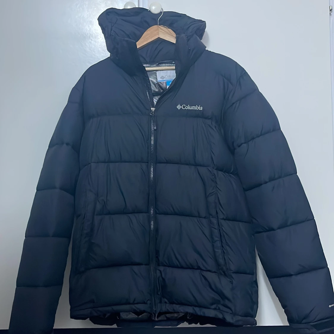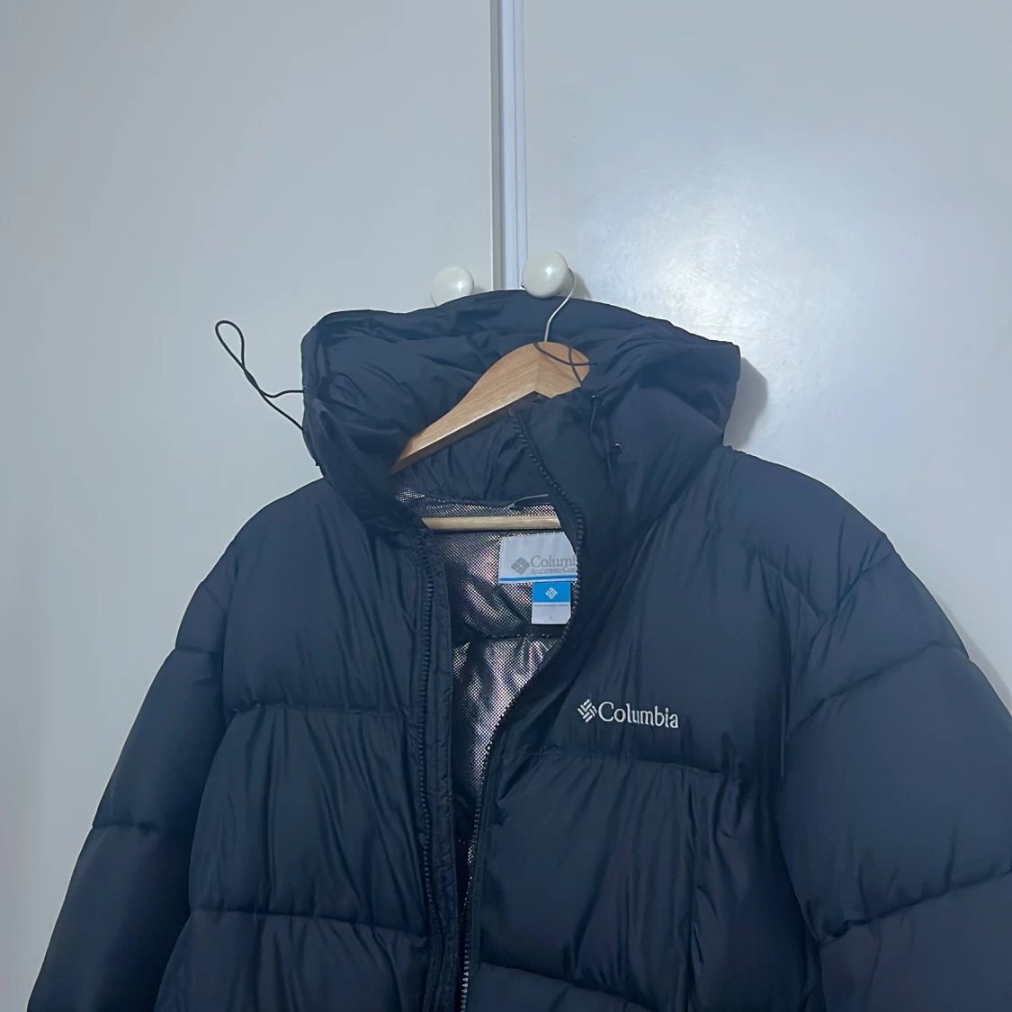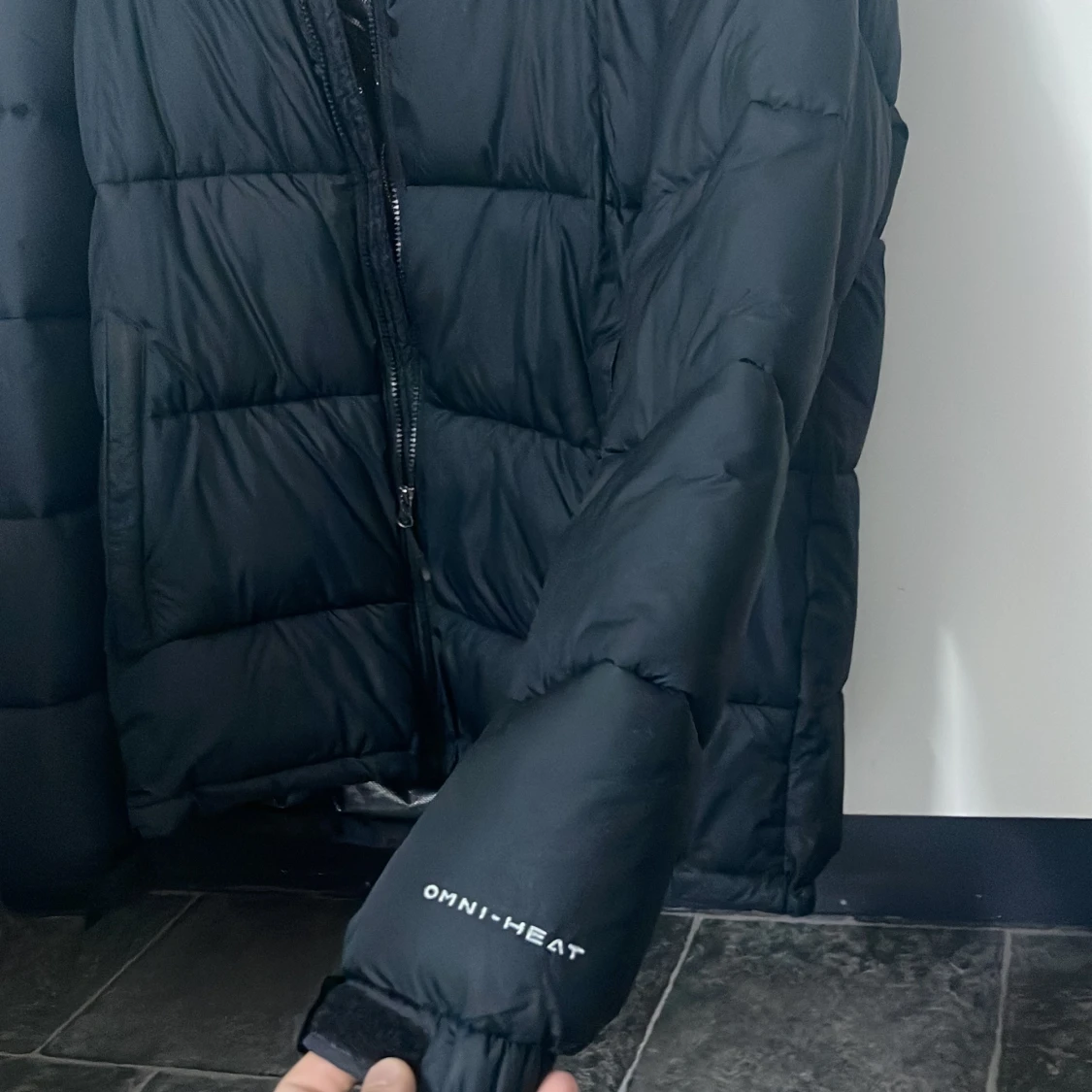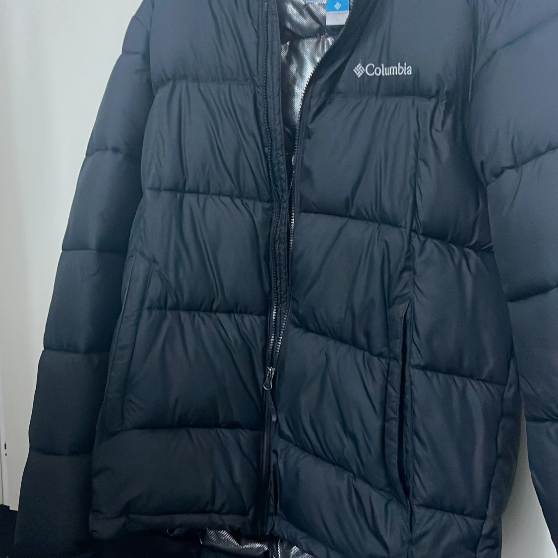 Säljer en svart dunjacka från Columbia med dragkedja och huva i storlek L. Bra skick, nypris runt 2000kr. Pris går att