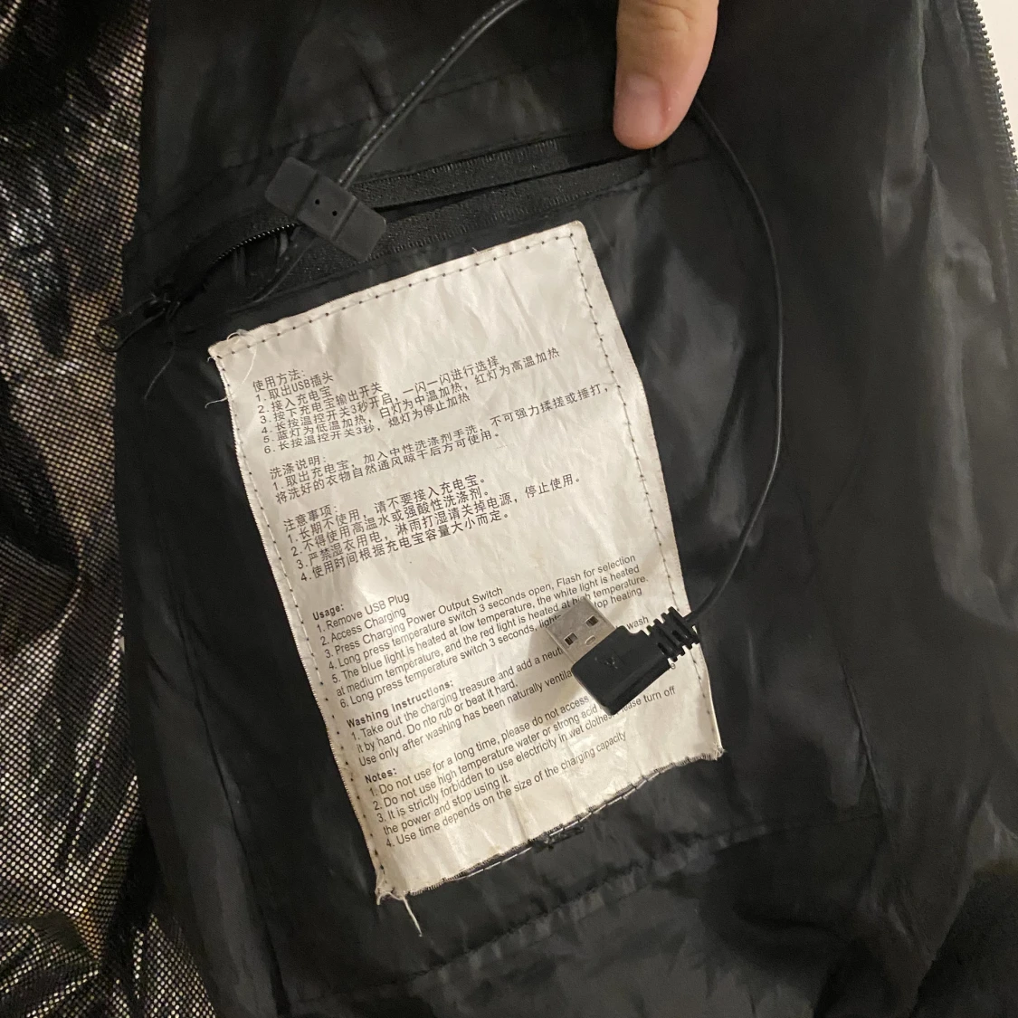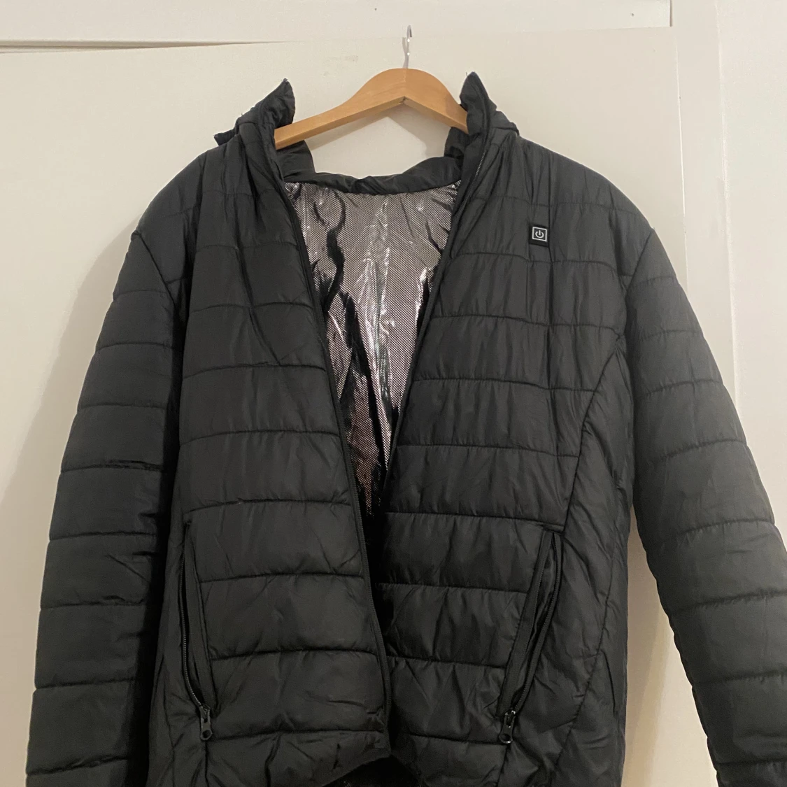 En svart jacka med värmefunktion, upp till 3 olika värme nivåer Storlek L men passar även vissa med storlek M Knappt använd bara ett par gånger Funkar perfekt till vintern Pris kan diskuteras