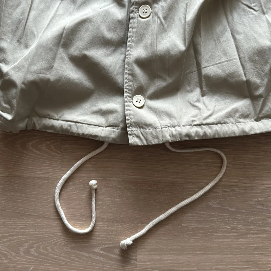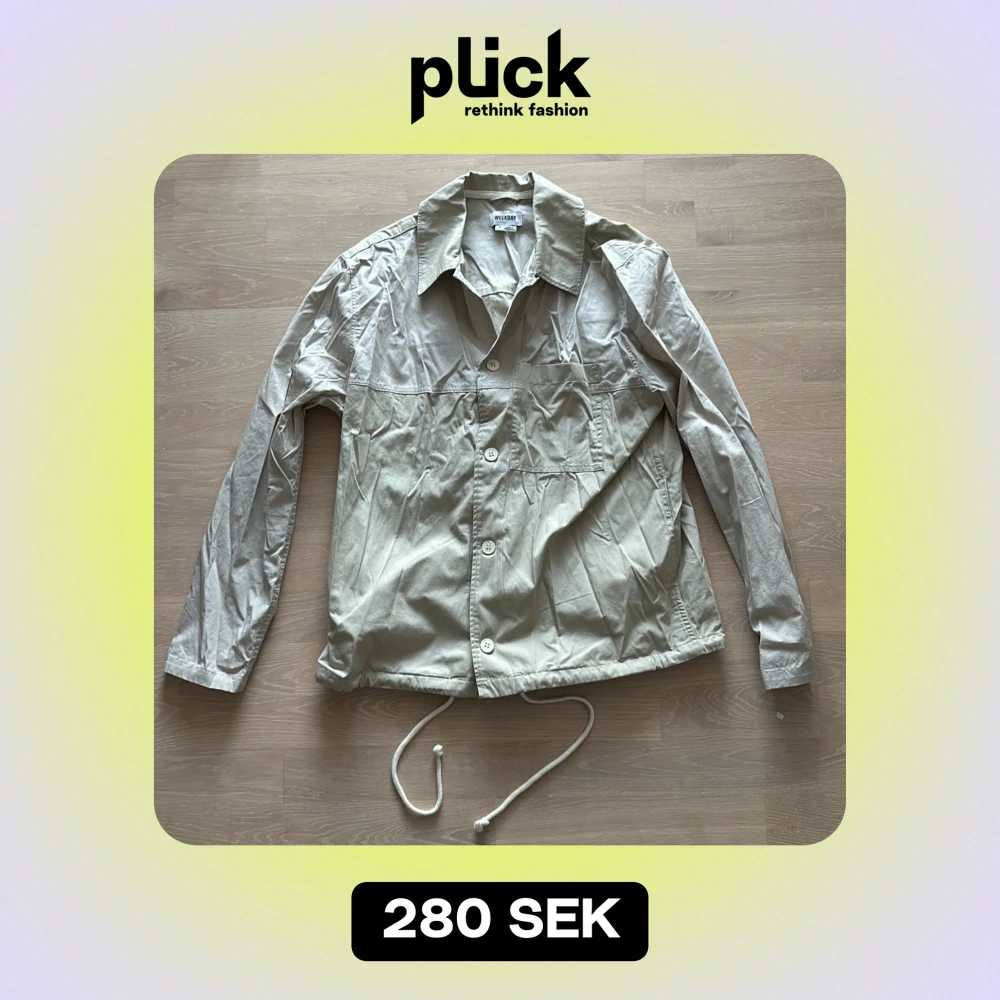 Säljer en beige med hint av grönt overshirt/jacka från Weekday i bra skick. Den har långa ärmar och knappar framtill. Justerbar dragsko i nederkant för en anpassad passform. Skön och stilren för en casual look.