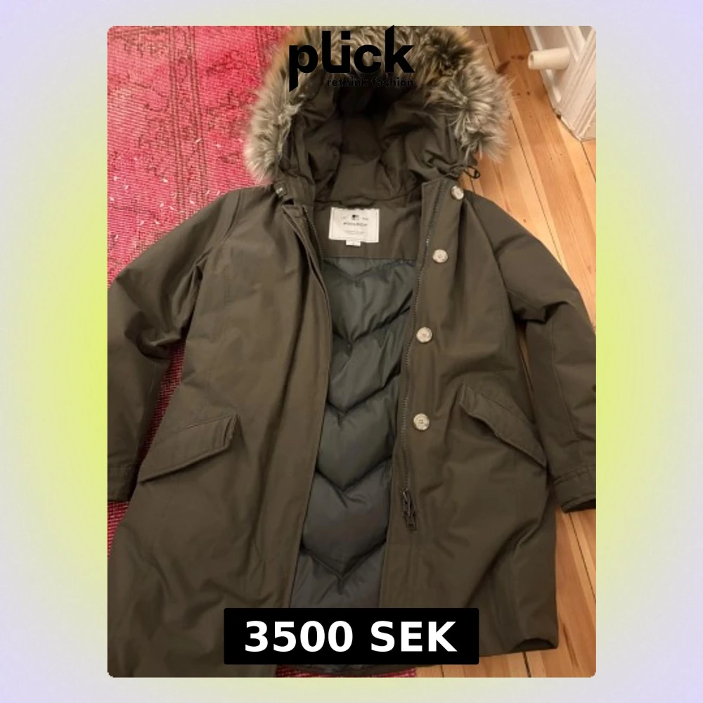 Säljer en olivgrön parkas från Woolrich med snygg päls på huvan. Jackan har långa ärmar, dragkedja och knappar framtill, samt två stora fickor. Insidan är quiltad och fodrad för extra värme. Perfekt för kalla vinterdagar och har en klassisk, clean look.