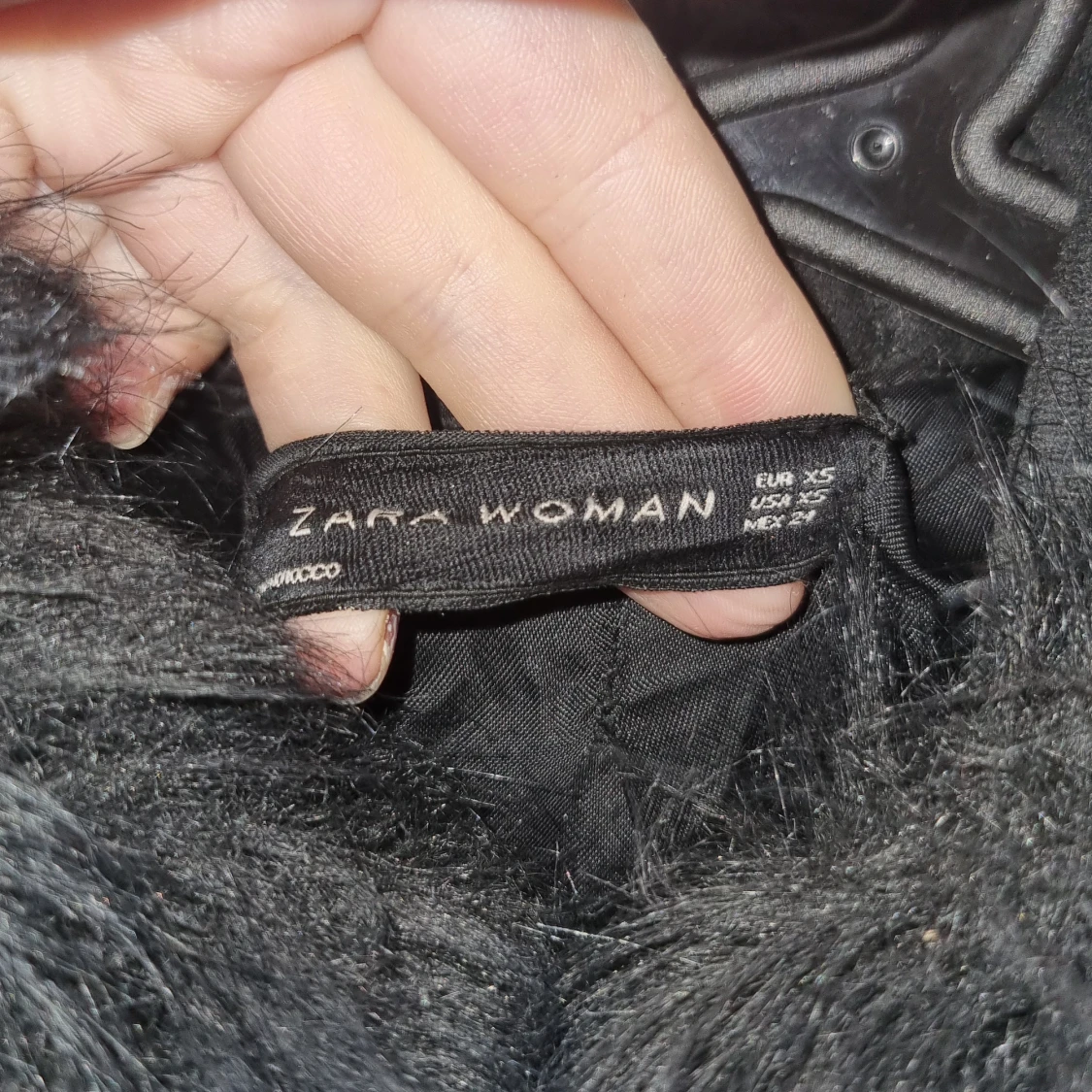 Längre jacka i storlek XS i bra skick, stor fluffig luva Köparen står för frakt (99kr)