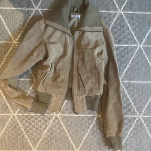 en så snygg bomberjacka i mocka material. dör för hur den sitter. nästan aldrig använd.