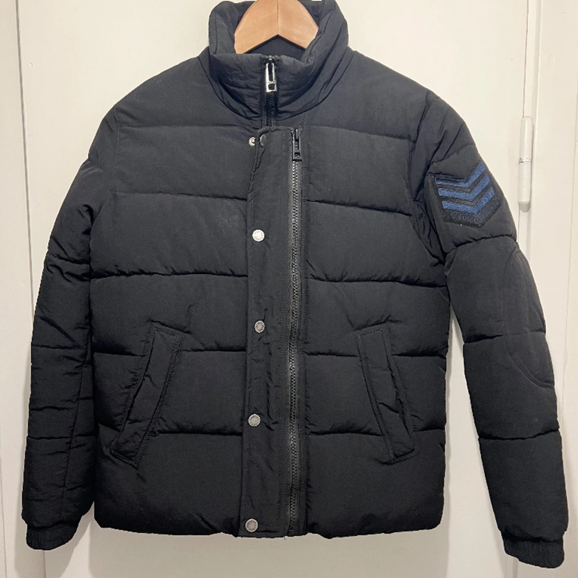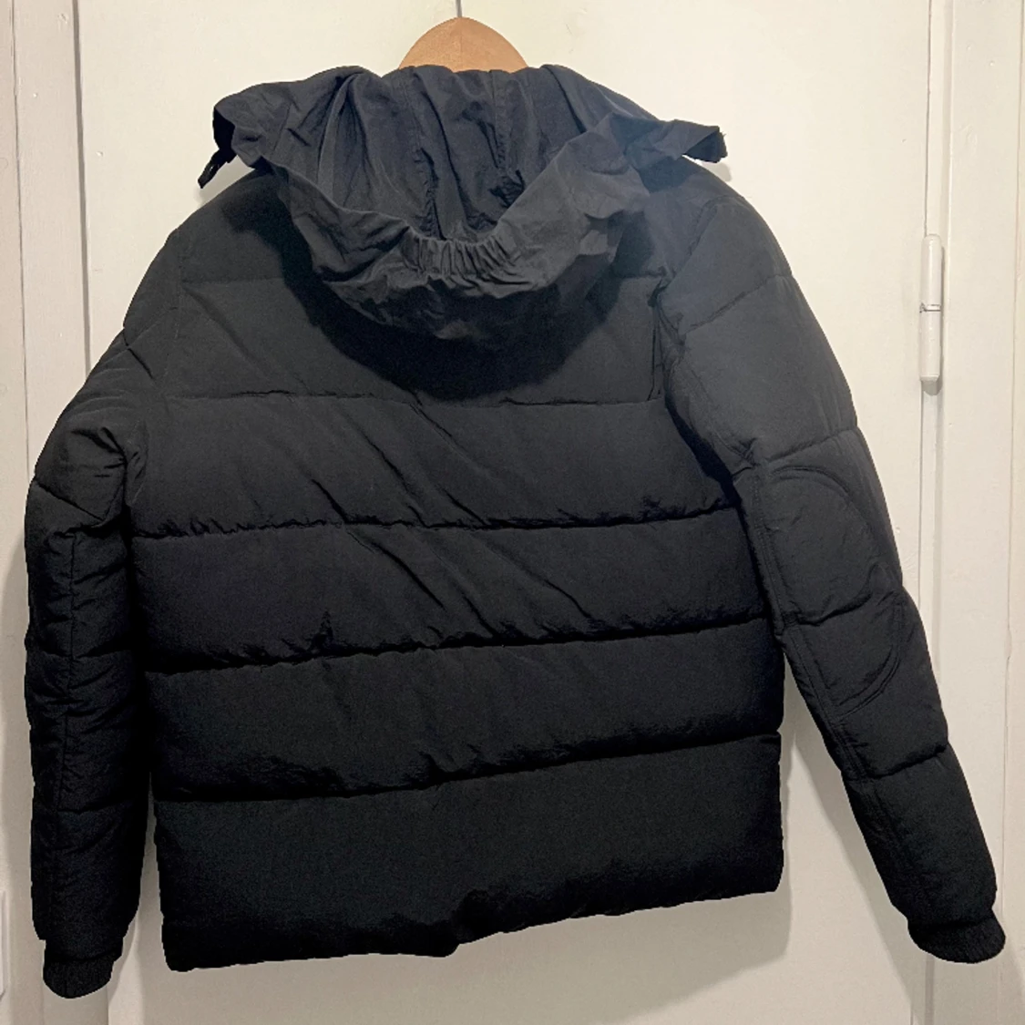 Ytterplagg, stl. 146/152 (10-12 år), Unisex Varm höst och vinterjacka från kids. Väldigt fint skick. Nypris 2100kr - Svart - Integrerad tunn luva som göms i en ficka på insidan av jackan - Dragkedja och knappar, går att ta av delen med knappar