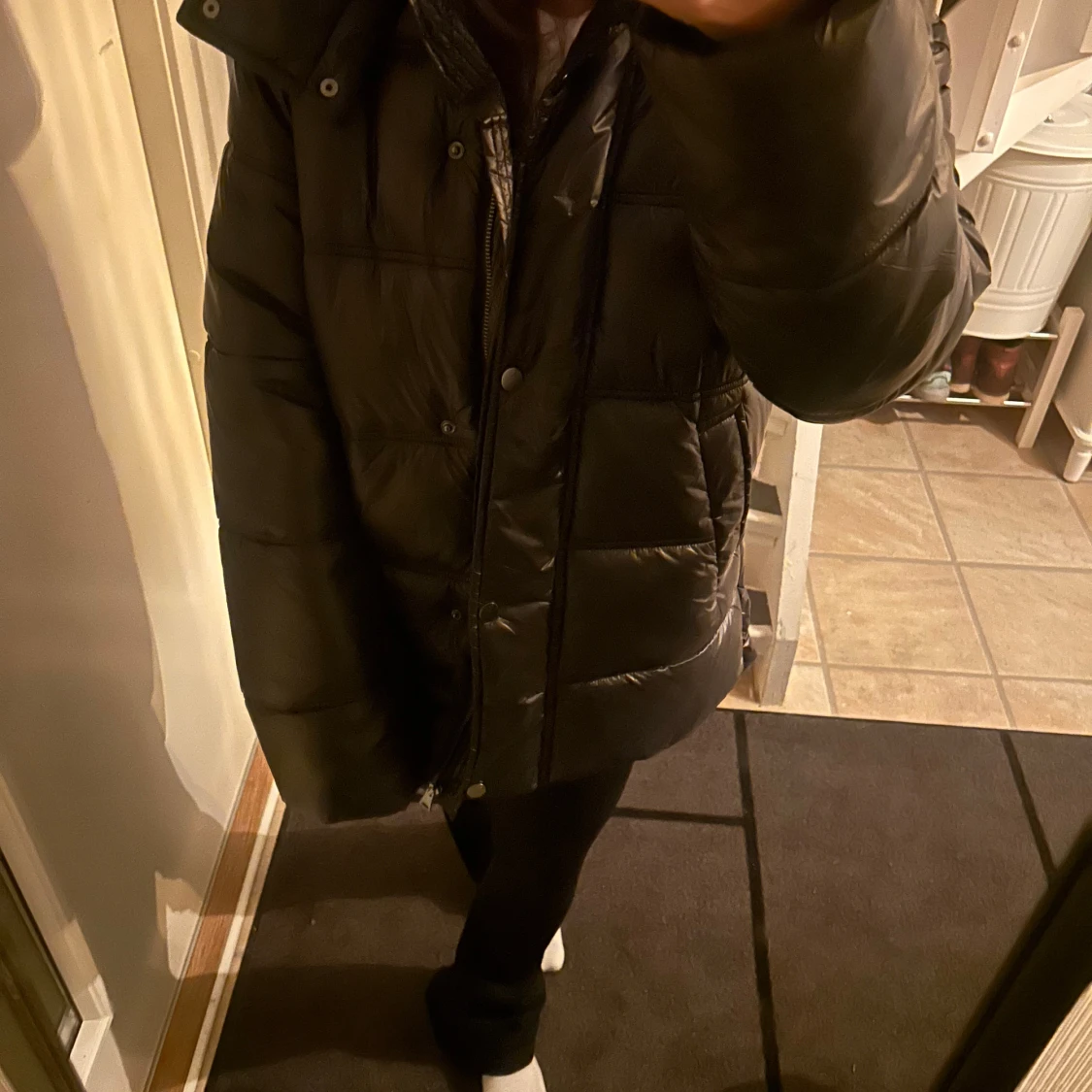 Säljer en svart pufferjacka i mycket bra skick. Den är perfekt för vintern med sin varma vaddering och har en praktisk huva. Jackan har långa ärmar och stängs med både dragkedja och knappar. Perfekt för kalla dagar! Nypris 1300kr, köpte förra veckan och inte använd