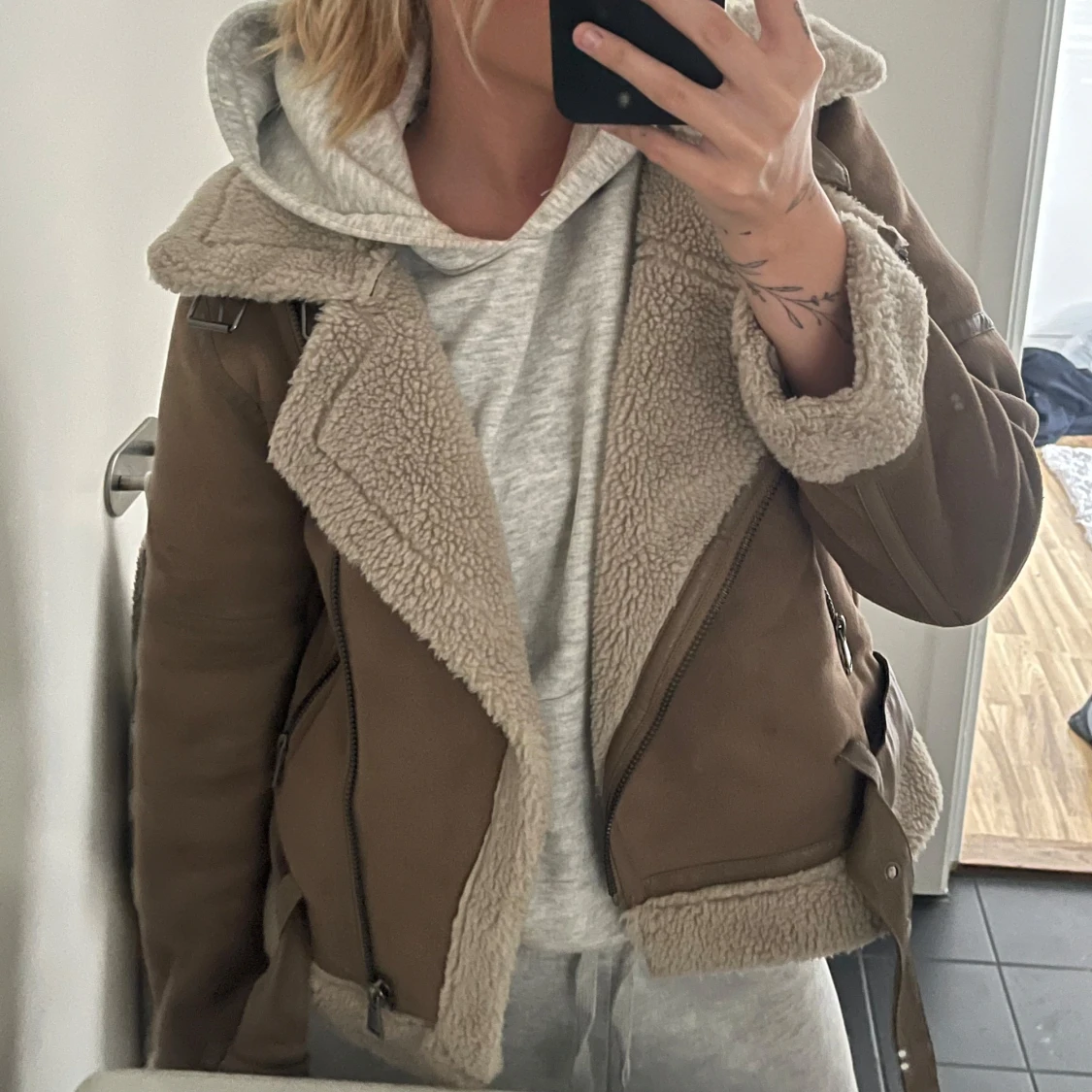 Snygg brun höstjacka från Zara med mysigt teddy foder. Jackan har dragkedja i sned modell, två fickor med dragkedja och bälte i midjan. Perfekt för kyliga dagar och ger en cool look till alla outfits. Endast använd vid ett tillfälle då jag skulle ha jackan till en outfit ☺️